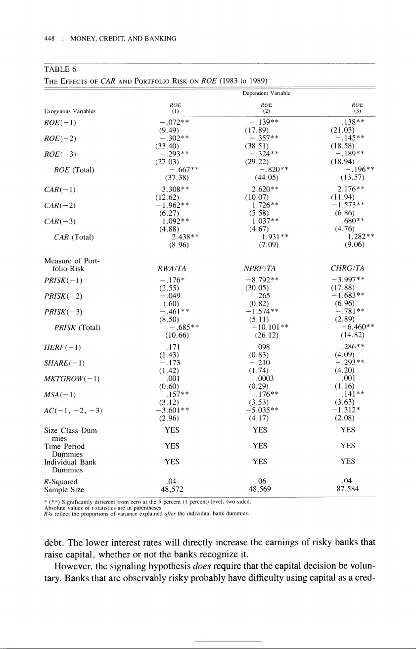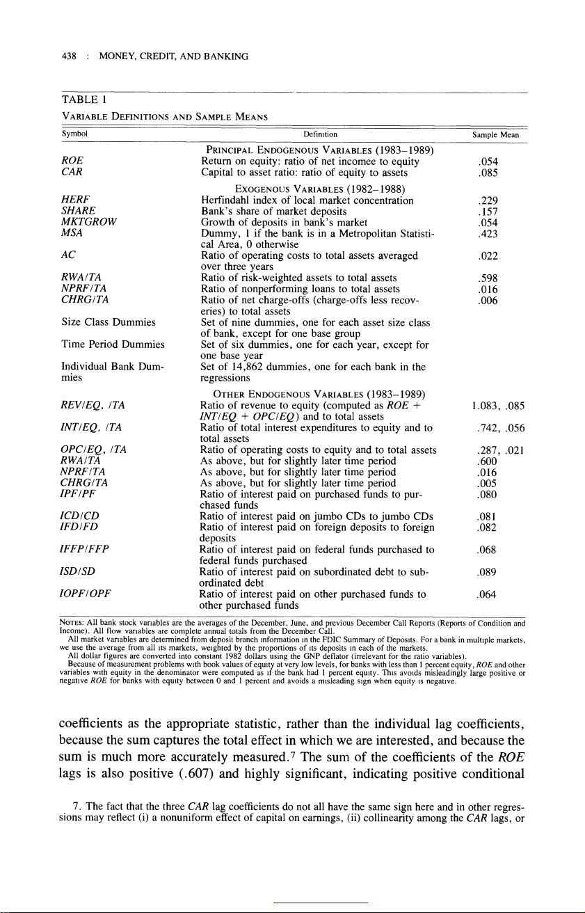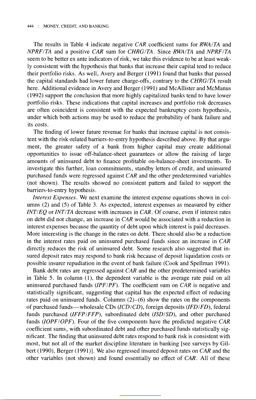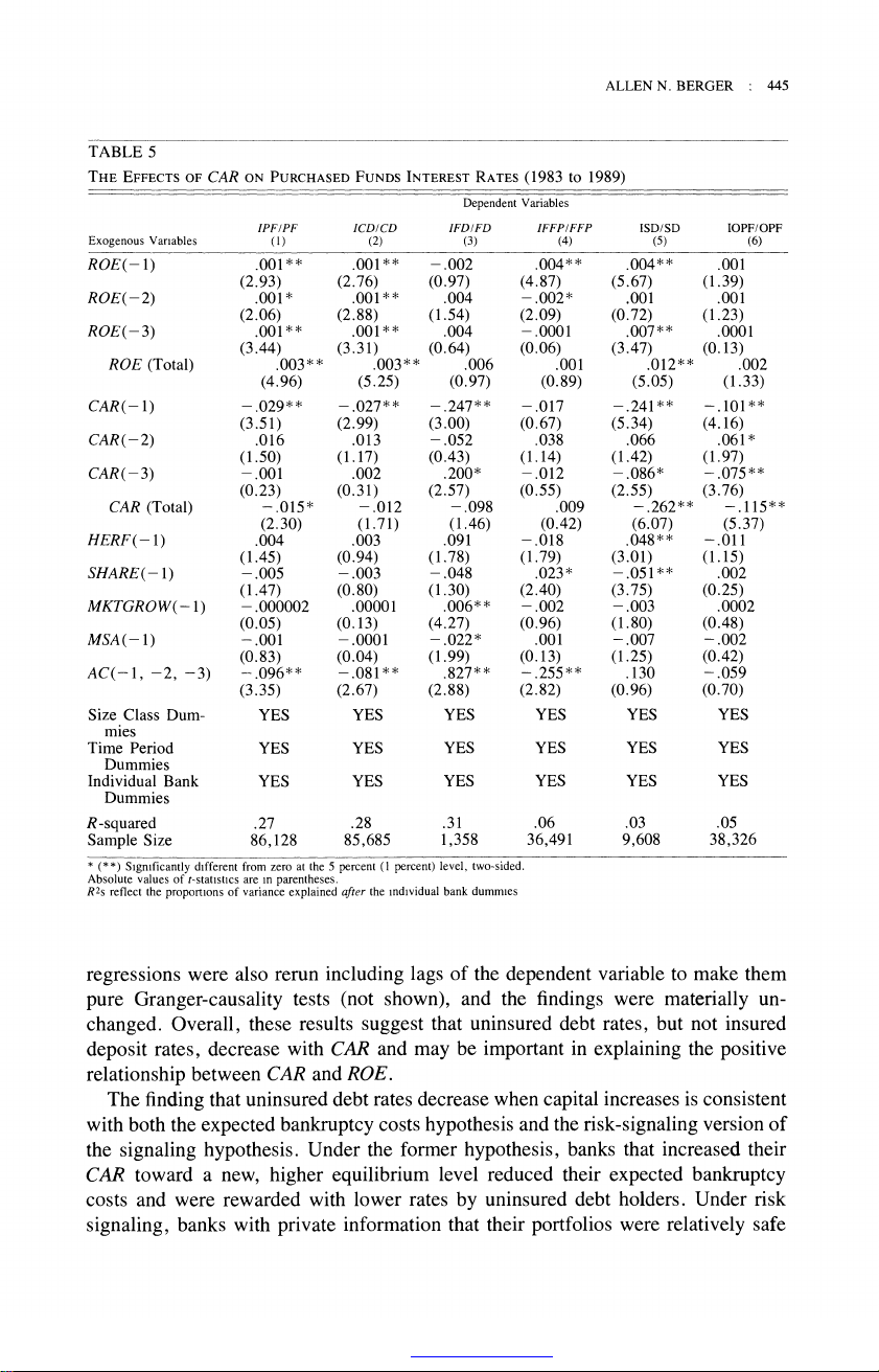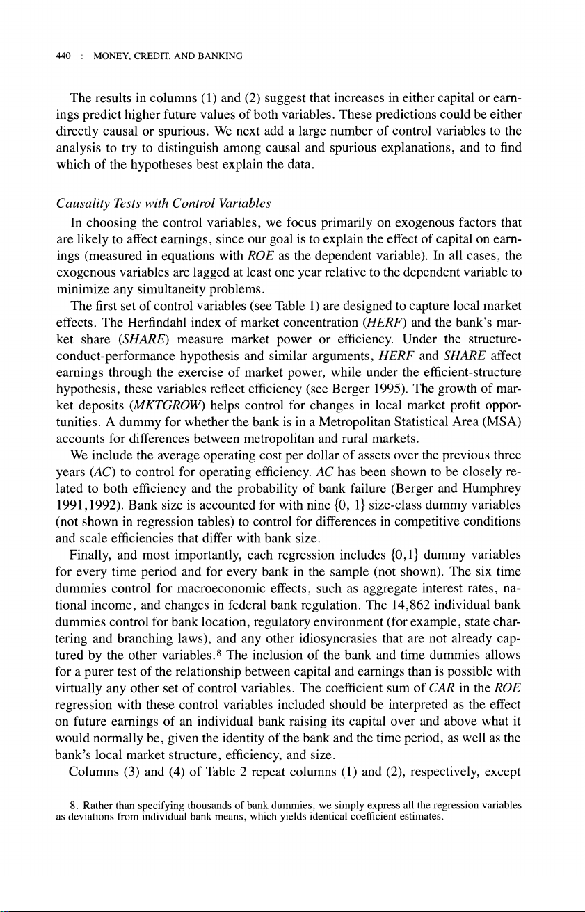 The Relationship between Capital and Earnings in Banking Author(s): Allen N. Berger