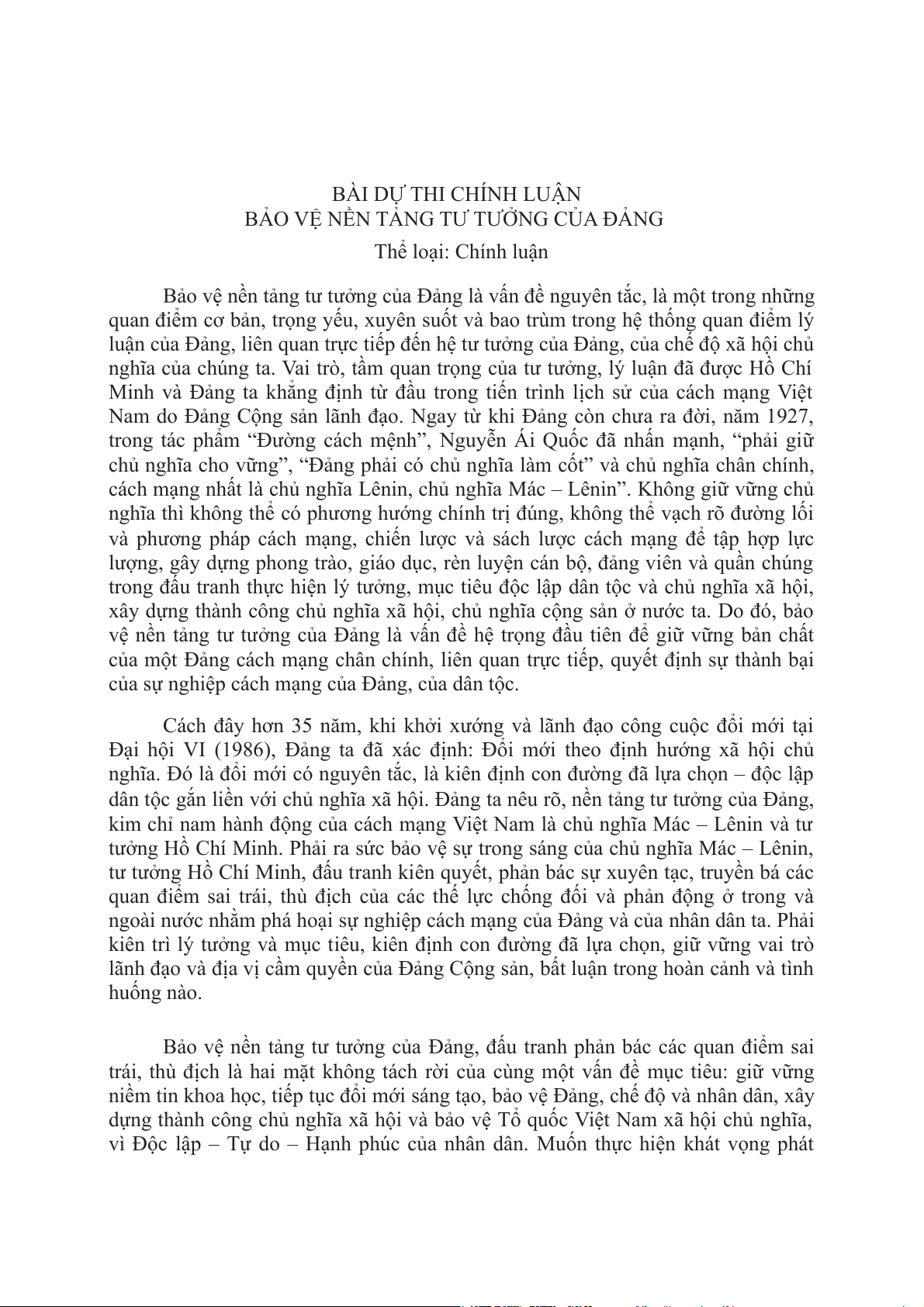 BẢO VỆ NỀN TẢNG TƯ TƯỞNG CỦA ĐẢNG Thể loại: Chính luận