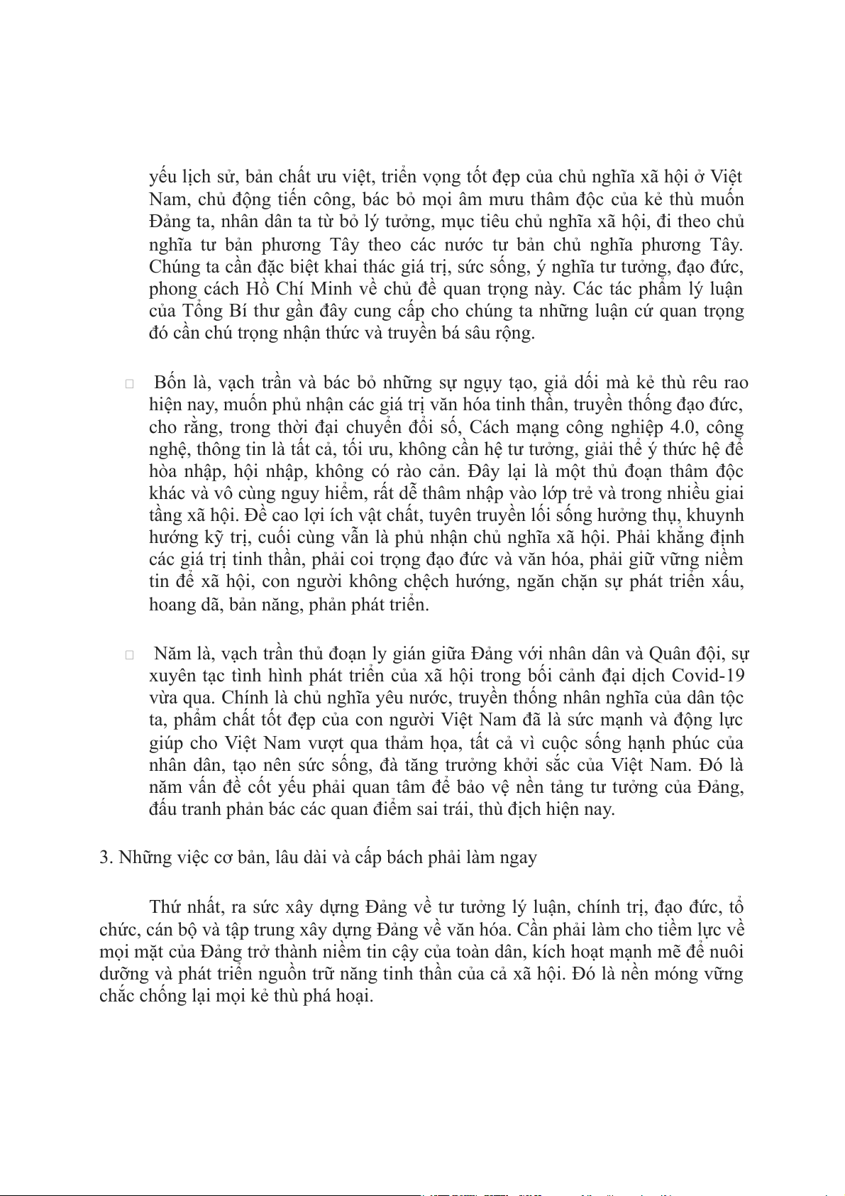 chức, cán bộ và tập trung xây dựng Đảng về văn hóa. Cần phải làm cho tiềm lực về