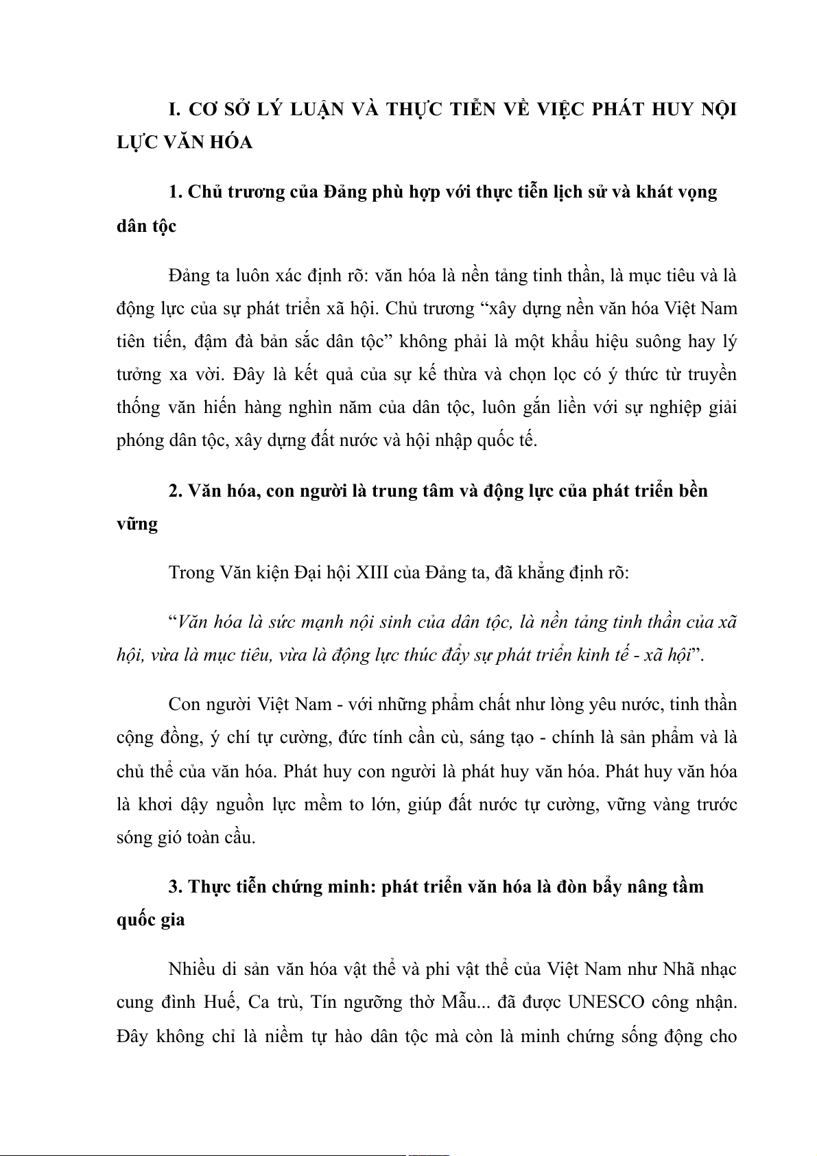I. CƠ SỞ LÝ LUẬN VÀ THỰC TIỄN VỀ VIỆC PHÁT HUY NỘI LỰC VĂN HÓA
