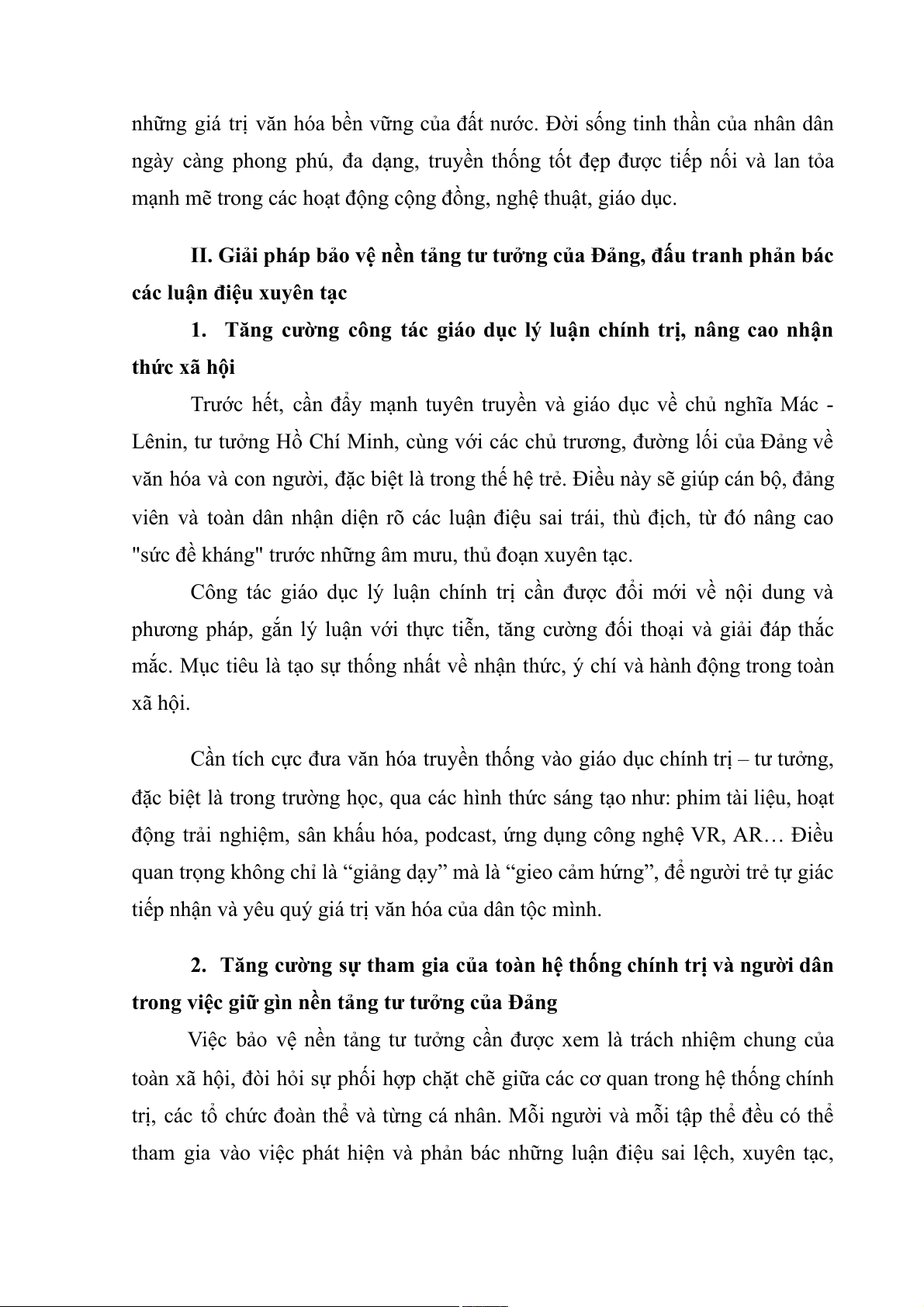 II. Giải pháp bảo vệ nền tảng tư tưởng của Đảng, đấu tranh phản bác