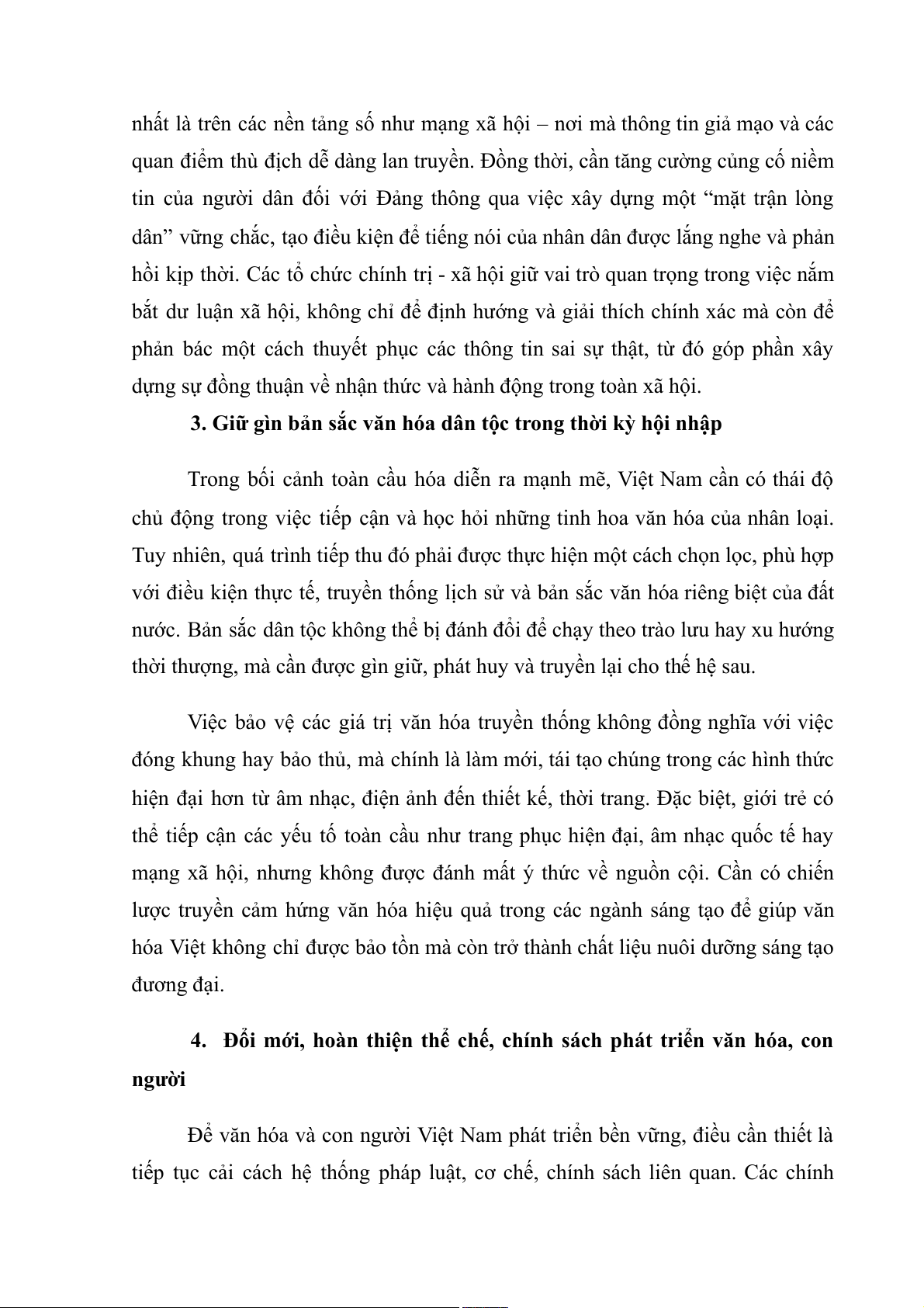 4. Đổi mới, hoàn thiện thể chế, chính sách phát triển văn hóa, con người