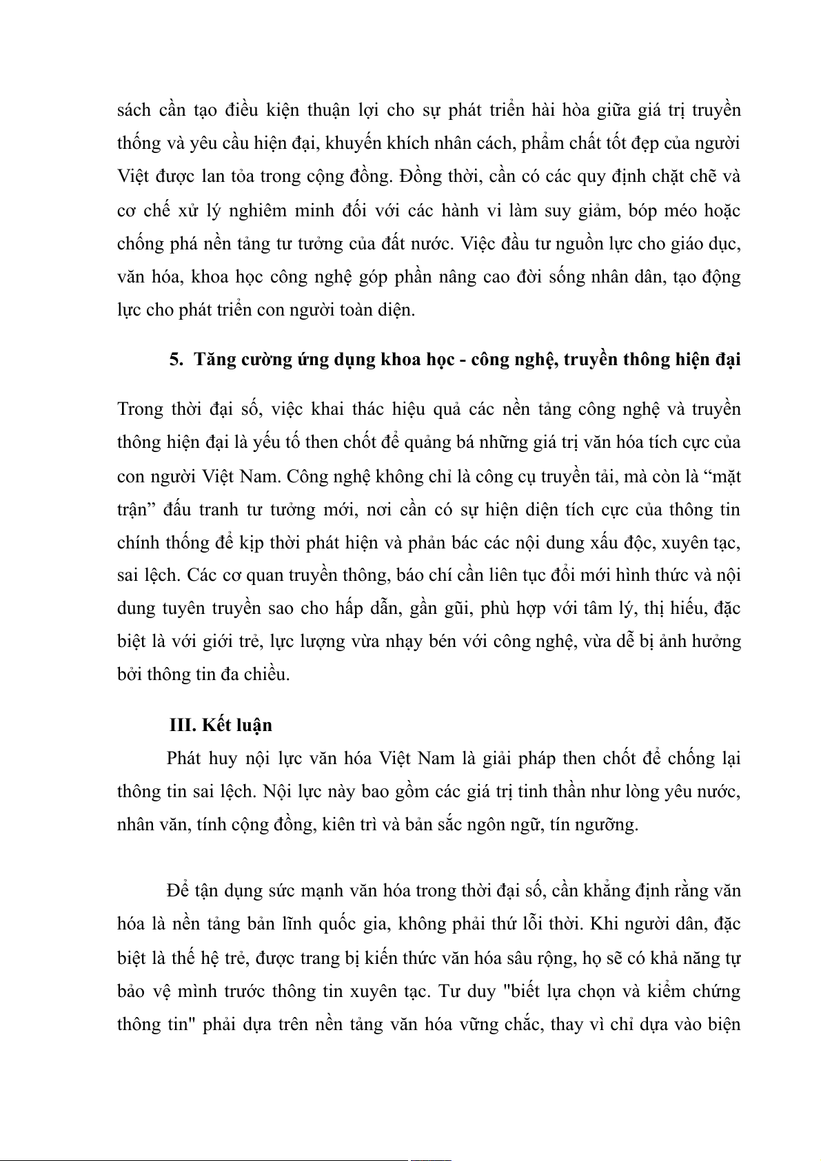biệt là với giới trẻ, lực lượng vừa nhạy bén với công nghệ, vừa dễ bị ảnh hưởng bởi thông tin đa chiều. III. Kết luận