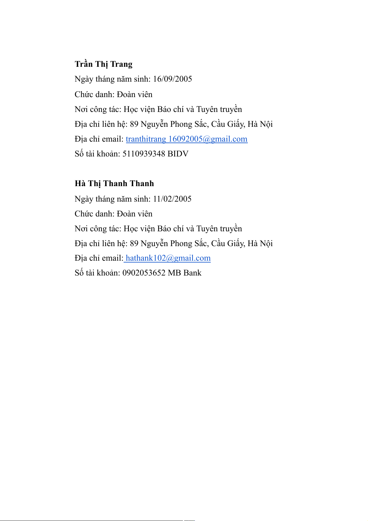 Địa chỉ email: tranthitrang 16092005@gmail.com