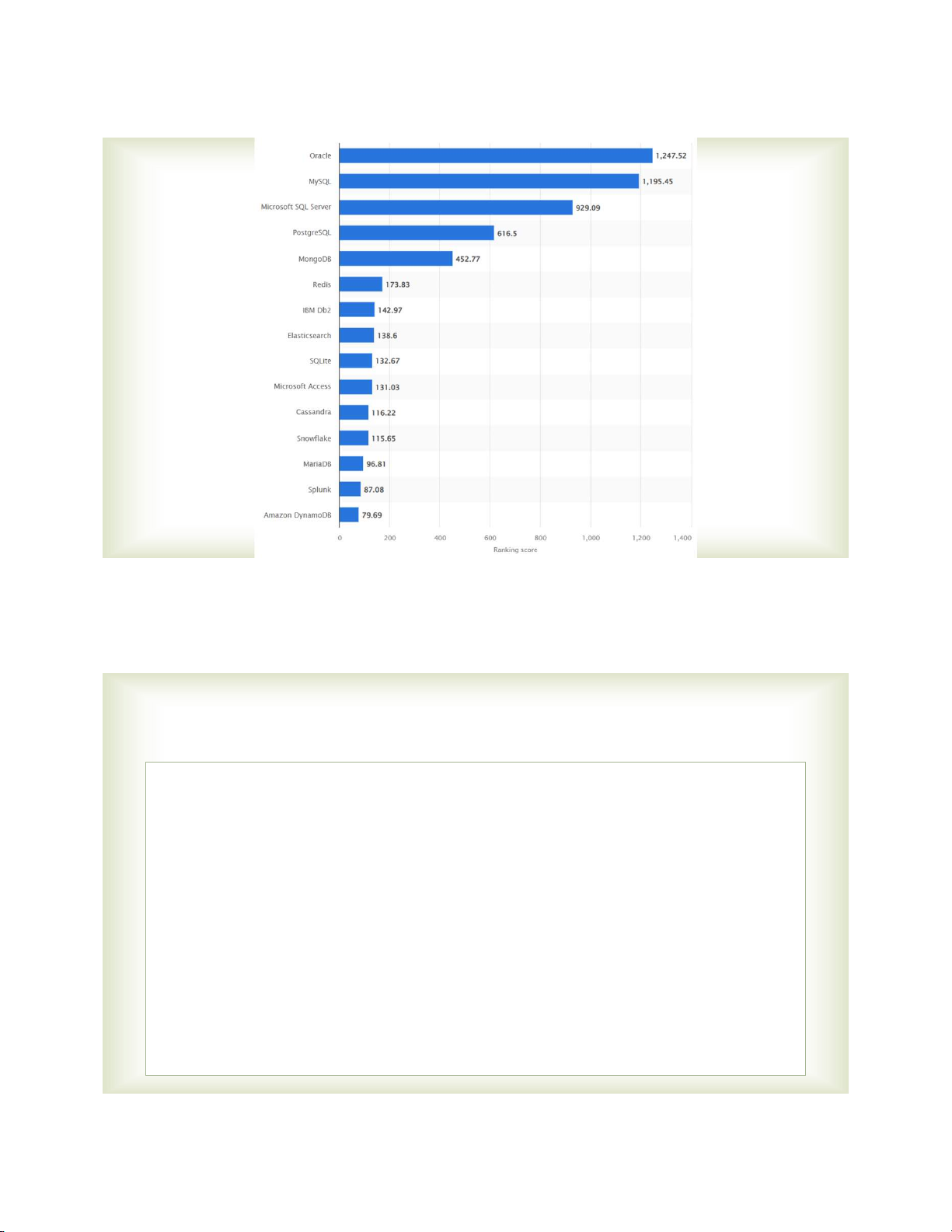 Oracle, Microsoft Sql Server, MySql, SQLite, MongoDb,… 2023