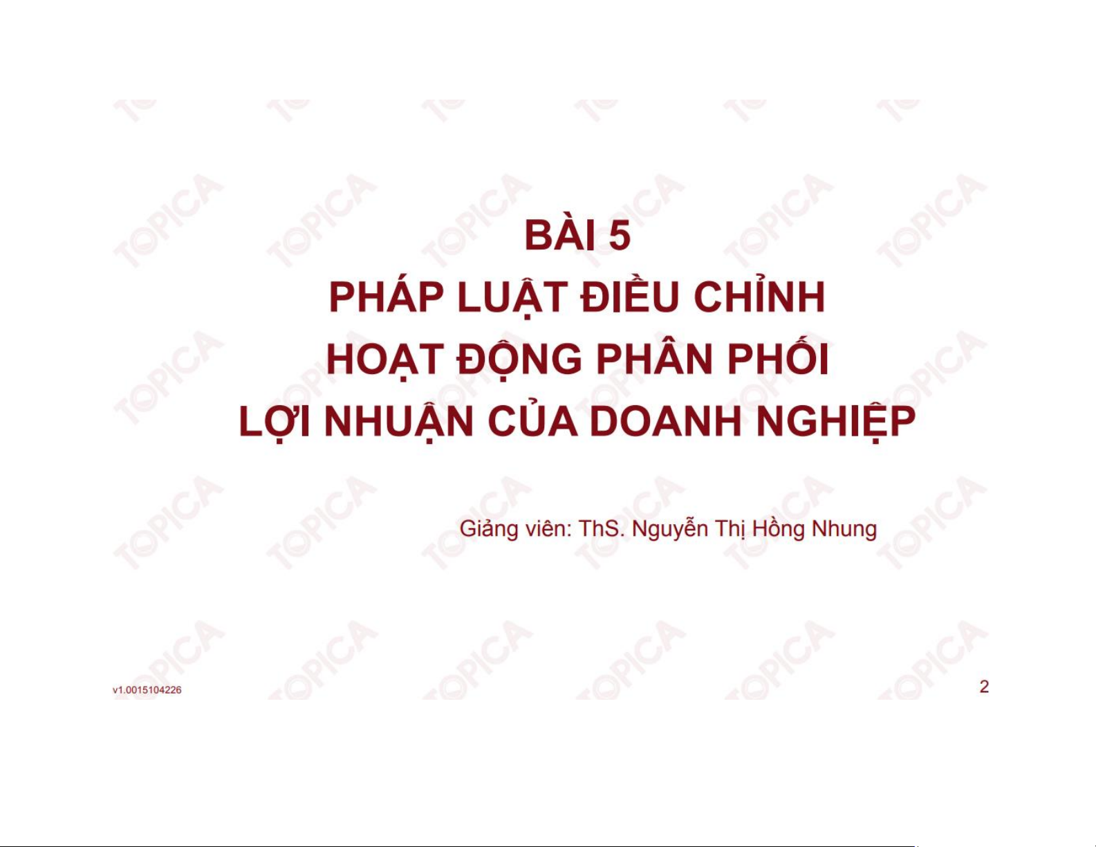Bài giảng Bài 5 Pháp luật điều chỉnh hoạt động phân phối lợi nhuận của doanh nghiệp môn Luật doanh nghiệp | Học viện Tòa án