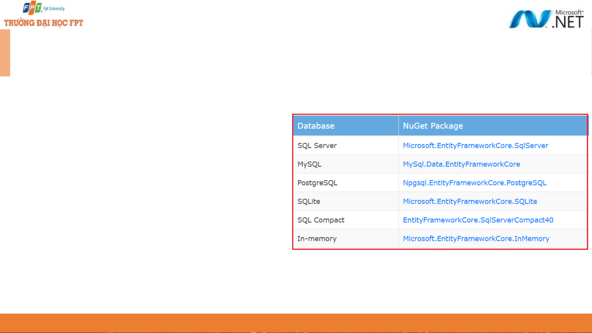 string against. In this case, we’ve used Microsoft.EntityFrameworkCore. SqlServer as the provider. ◆
