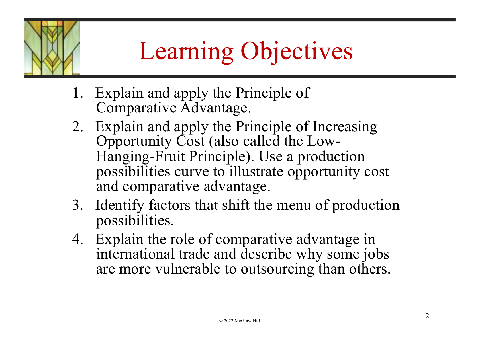 are more vulnerable to outsourcing than others. 2 © 2022 McGraw Hill. Exchange and Opportunity Cost