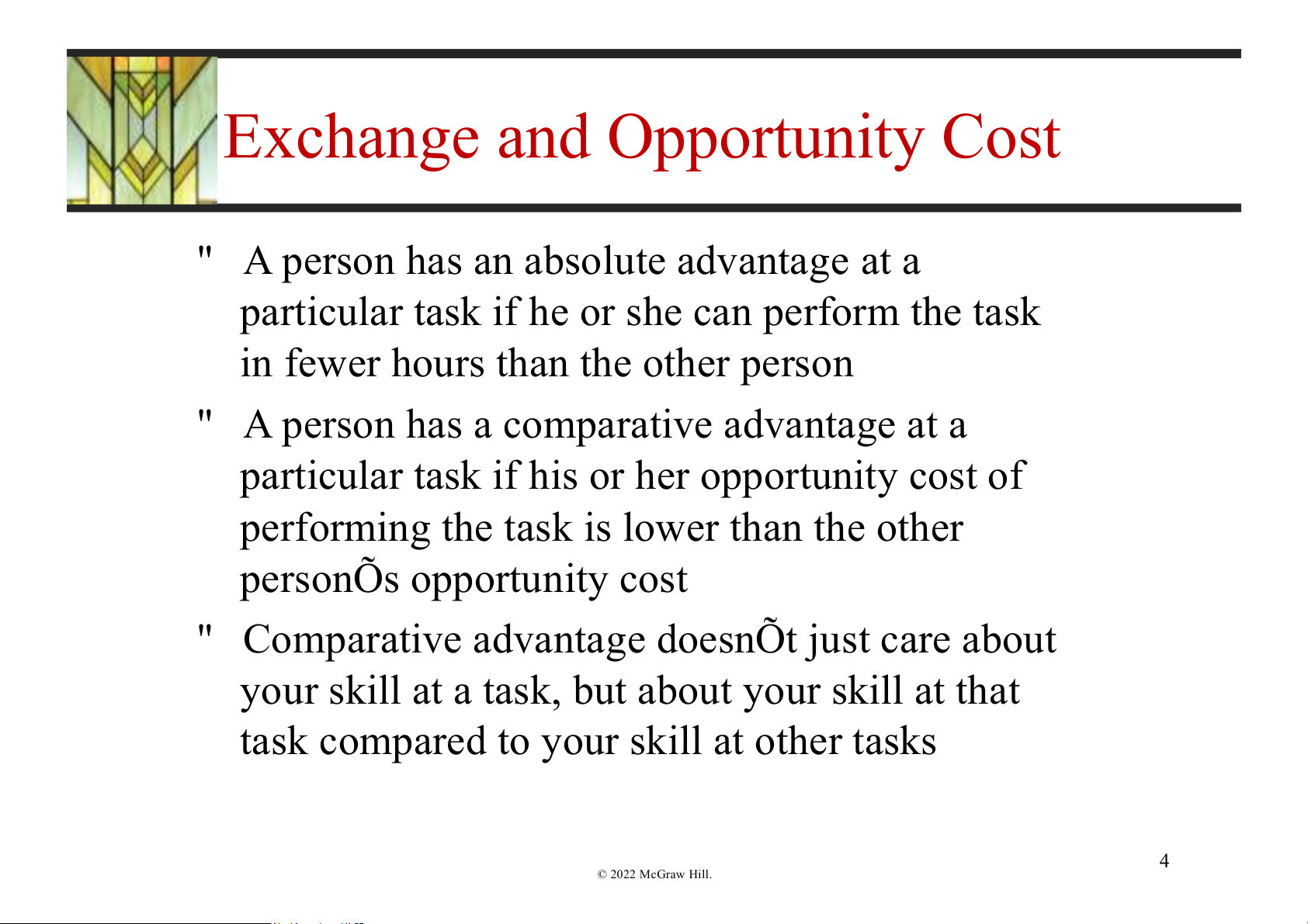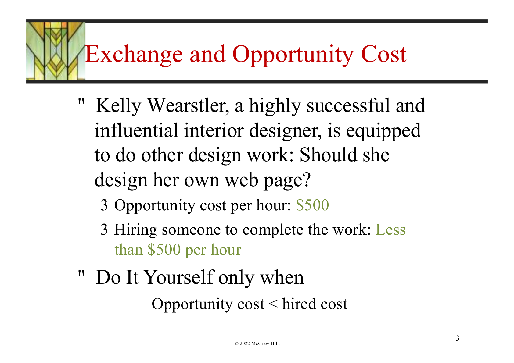 Opportunity cost < hired cost 3 © 2022 McGraw Hill. Exchange and Opportunity Cost