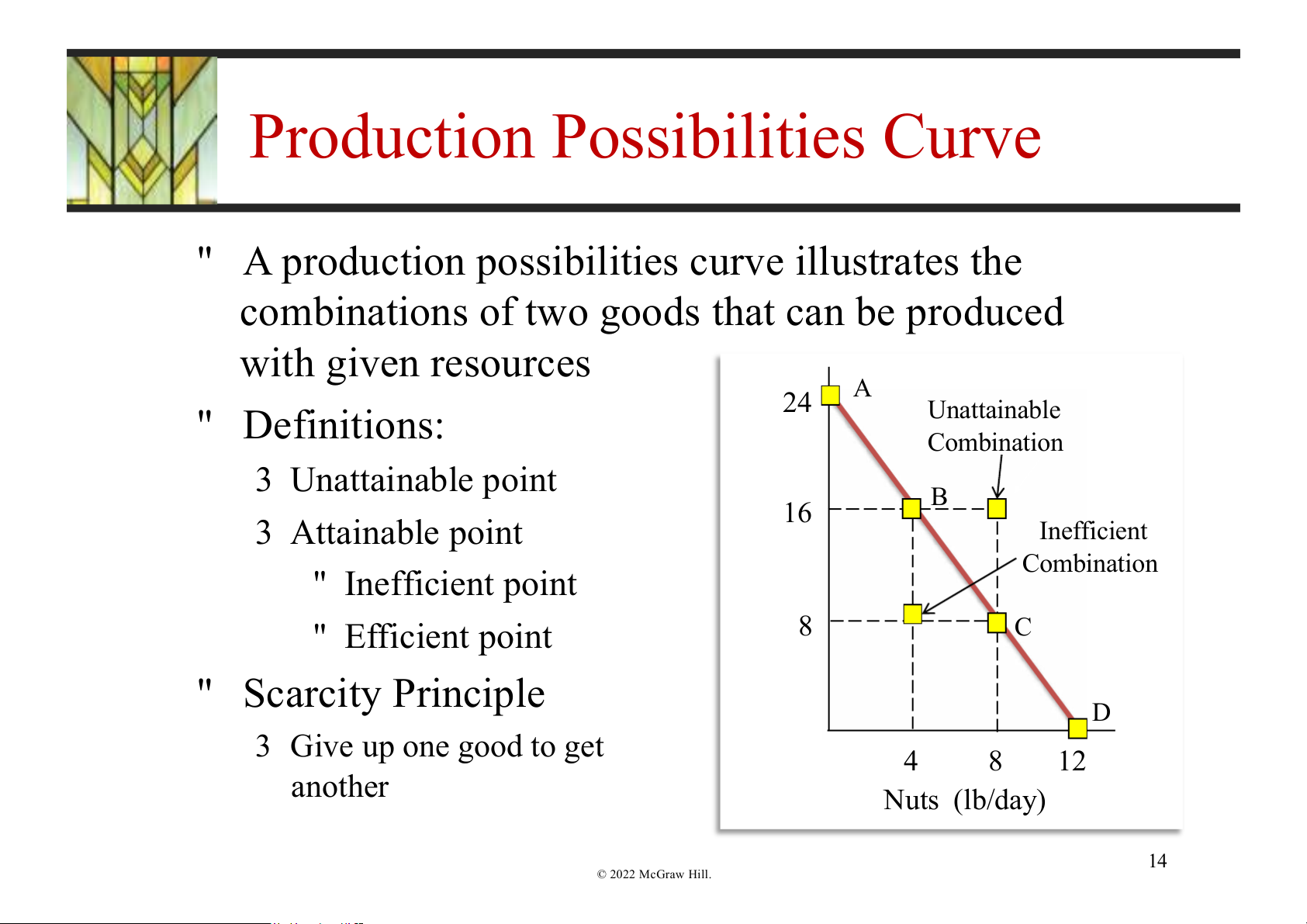 " Value placed on craftsmanship " Support for entrepreneurship 13 © 2022 McGraw Hill. Production Possibilities Curve