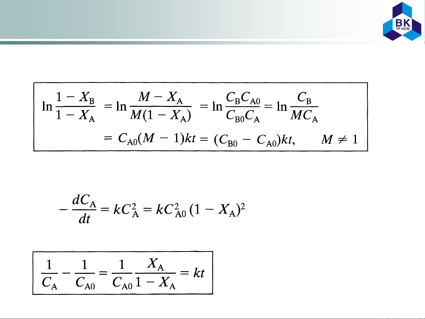 A = k dt A or − ln = (2.3) kt C C C A A0 C Ao 0 A − ln = kt CA0 1