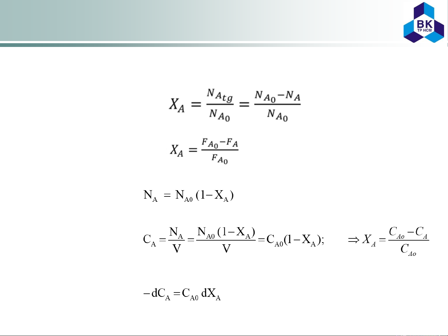 The fraction of any reactant, say A, converted to something else Batch operation Continuous operation Constant volume