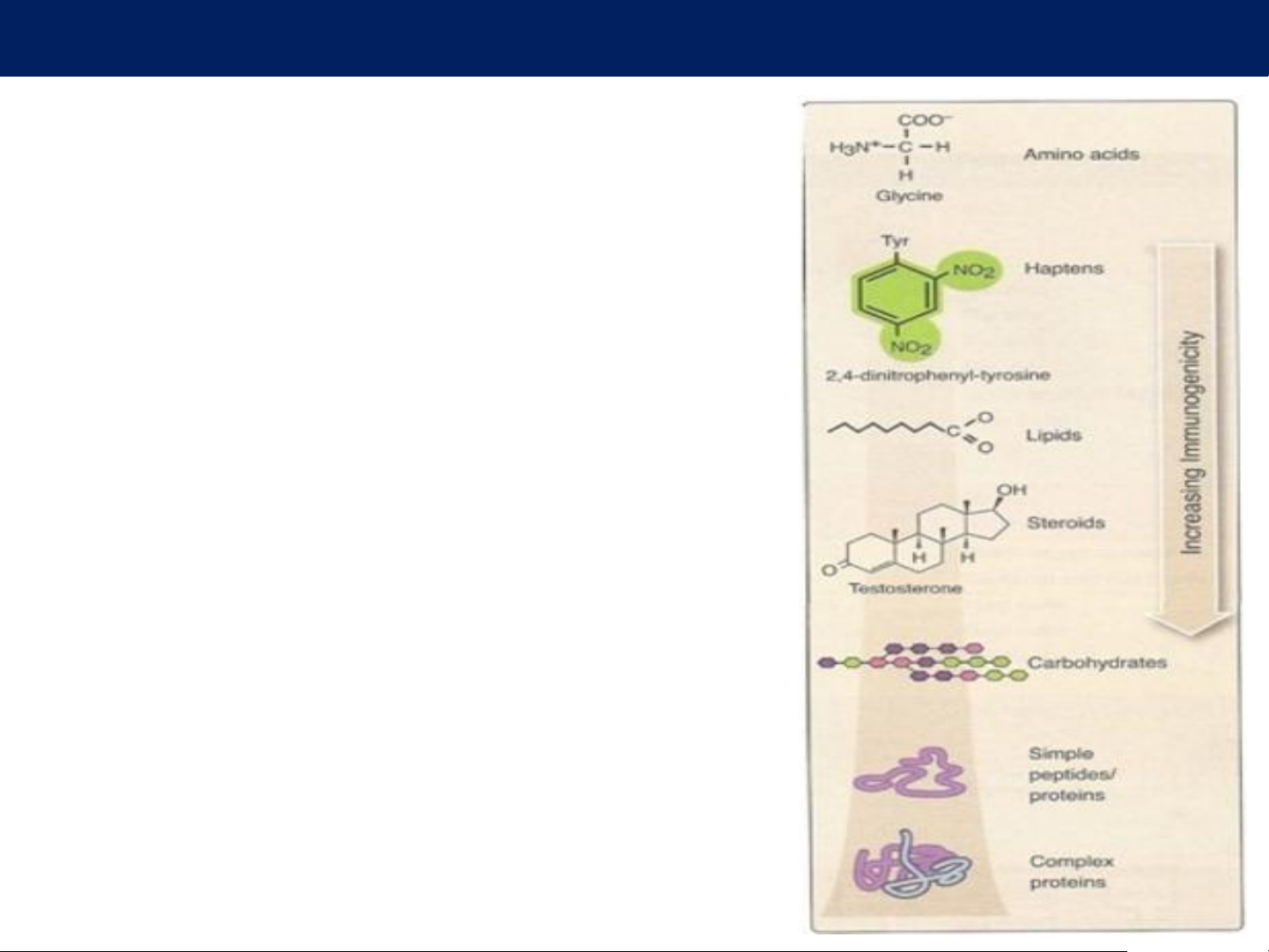 Immunogen: two important functional properties (1) Immunogenicity. (2) Reactivity. Immunogen Antigen Anything that induces a Binds to the products of the specific i. responses immune response A piece of Immunogen can Could be an Immunogen. be an antigen. Features of Immunogen
