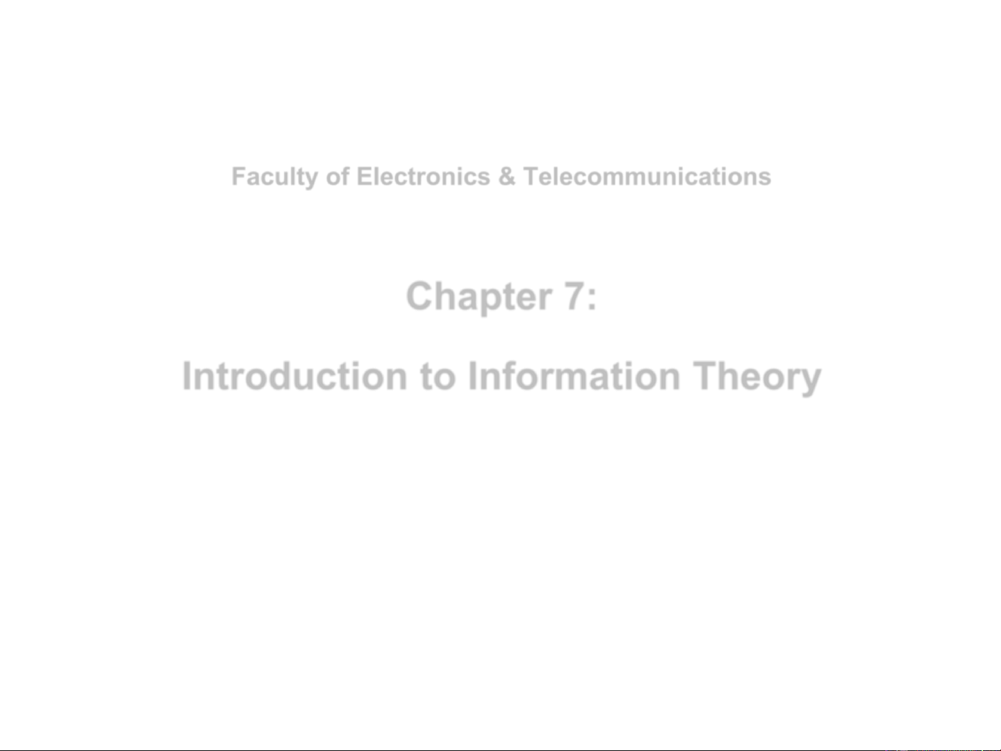Faculty of Electronics & Telecommunications Chapter 7: