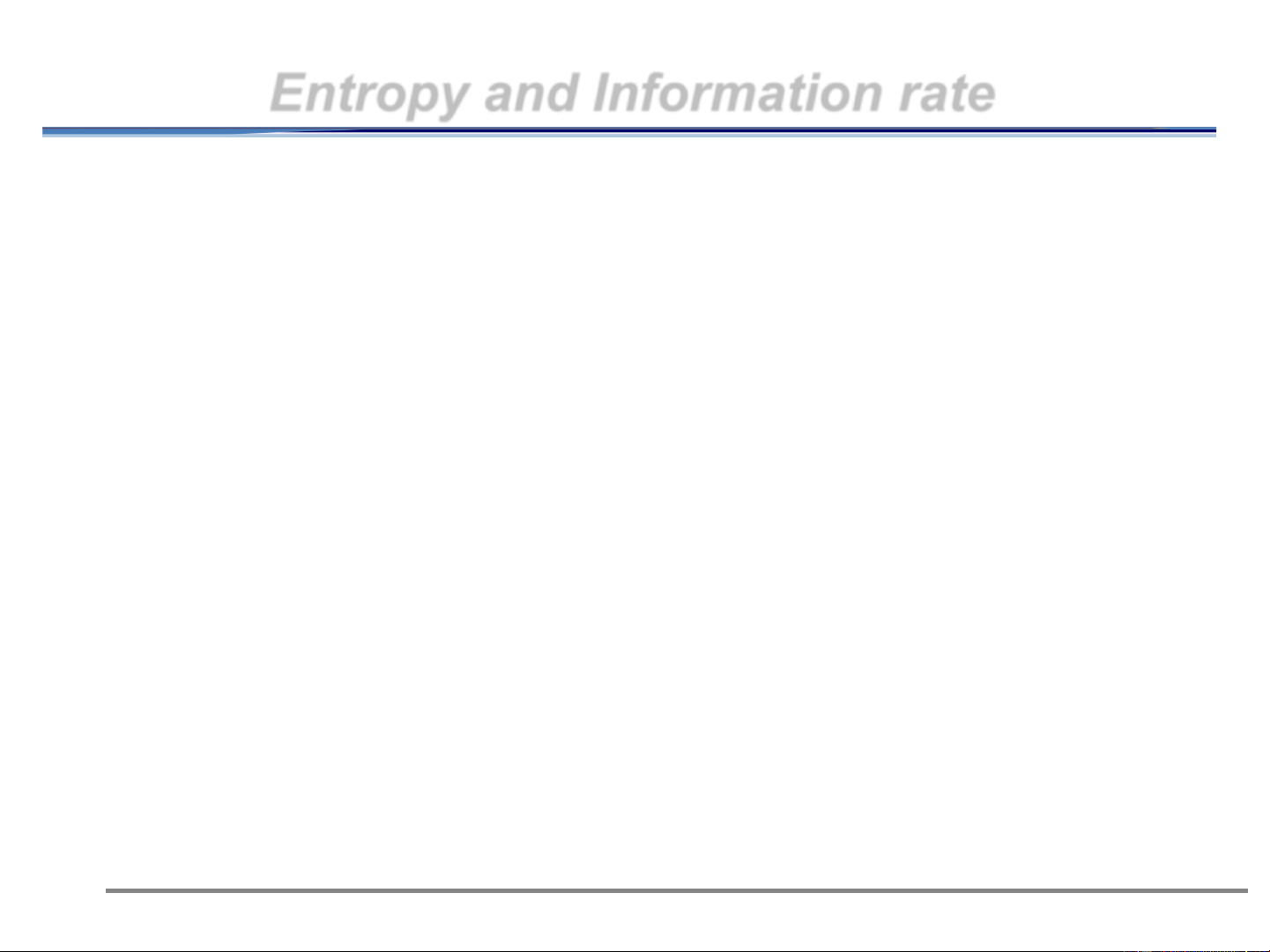– H(X)=-0.1 log 0.1-0.9log 0.9=0.469bits/symbol 2 2