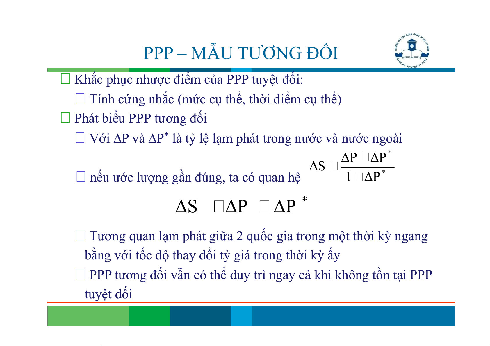 Tỷ giá có tính linh hoạt và biến động cao trong ngắn hạn lẫn dài hạn PPP – MẪU TƯƠNG ĐỐI