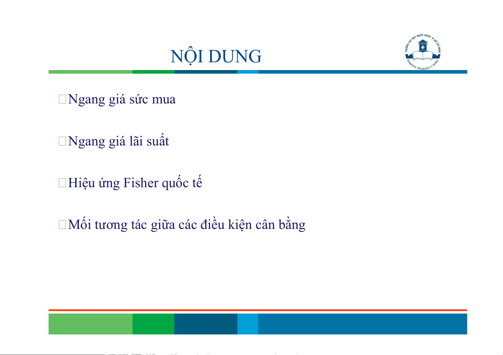 Q AN HỆ CÂN BẰNG QUỐC TẾ NỘI DUNG Ngang giá sức mua Ngang giá lãi suất i Hiệu i h ố ế ứng Fisher quốc tế