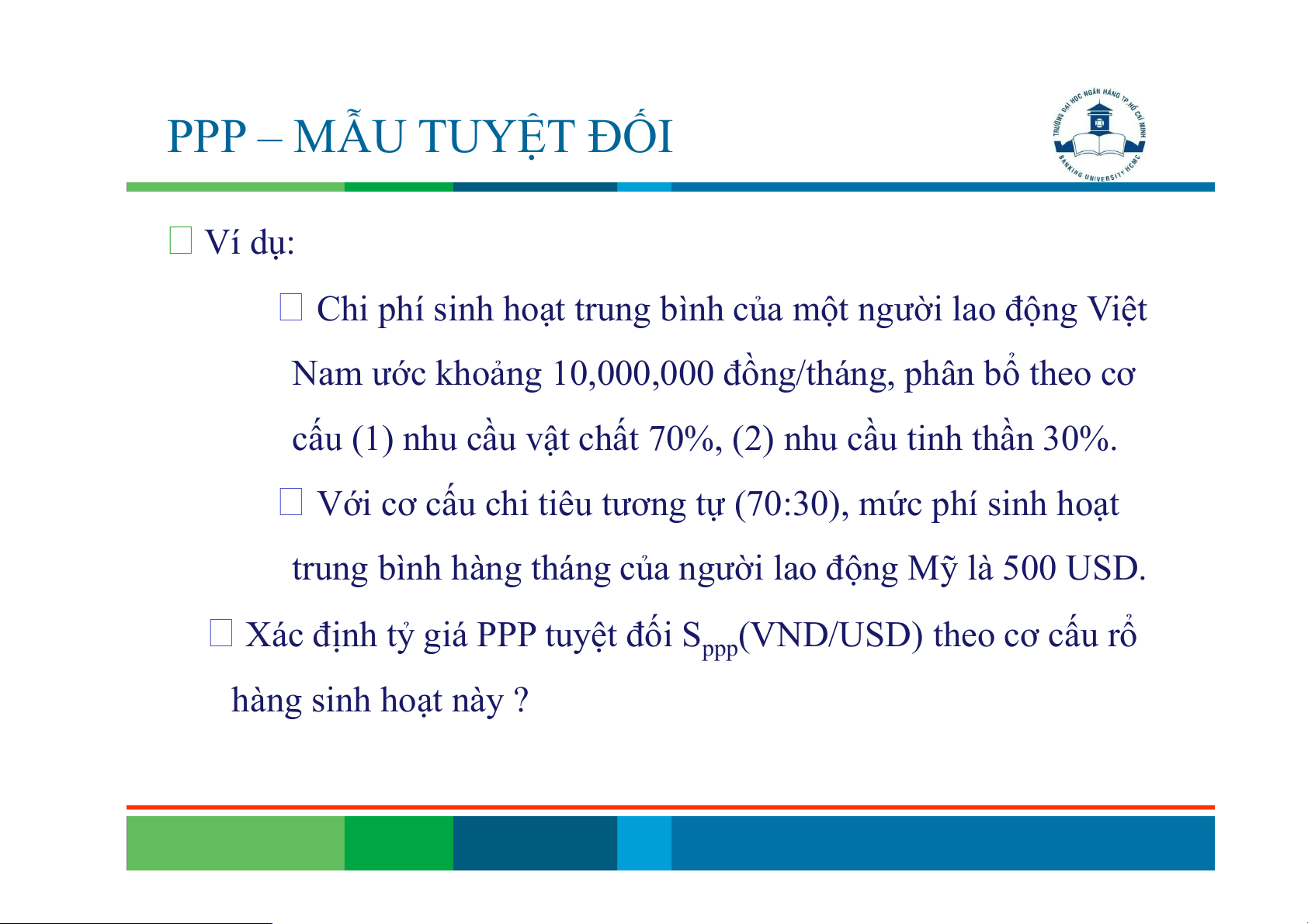 Sppp : tỷ giá ngang bằng sức mua giữa nội tệ và ngoại tệ PPP – MẪU TUYỆT ĐỐI Ví dụ: