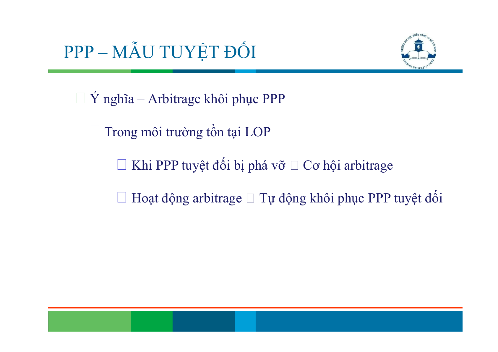 Hoạt động arbitrage Tự động khôi phục PPP tuyệt đối PPP – MẪU TUYỆT ĐỐI Kiểm định thực nghiệm Bằng chứng thực tế Sai lệch ? Nguyên nhân ?