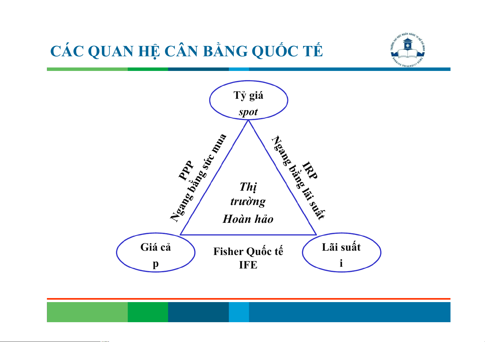 CÁC QUAN HỆ CÂN BẰNG QUỐC TẾ Tỷ giá spot Thị trường Hoàn hảo Giá cả Lãi suất Fisher Quốc tế p IFE i
