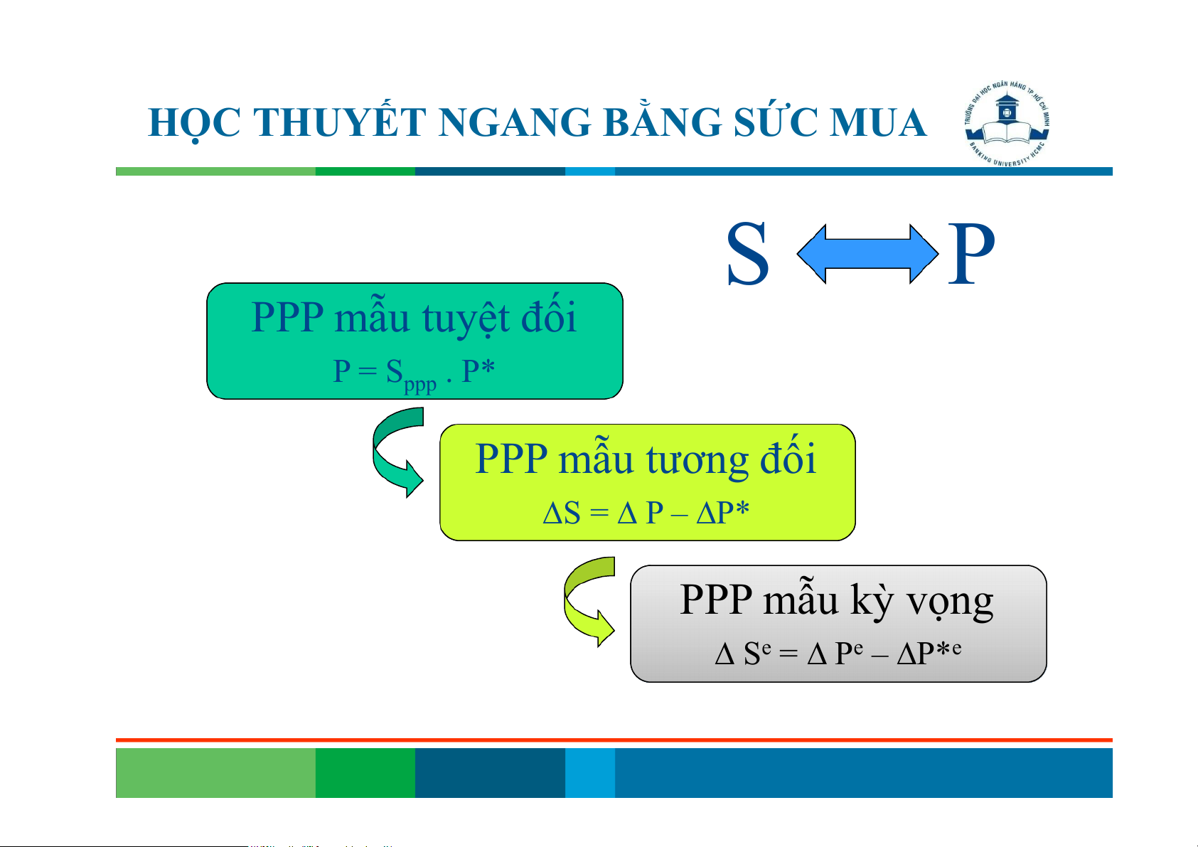 HỌC THUYẾT NGANG BẰNG SỨC MUA S P PPP mẫu tuyệt đối P = S . P* ppp PPP mẫu tương đối ∆S = ∆ P – ∆P* PPP mẫu kỳ vọng ∆ Se = ∆ Pe – ∆P*e