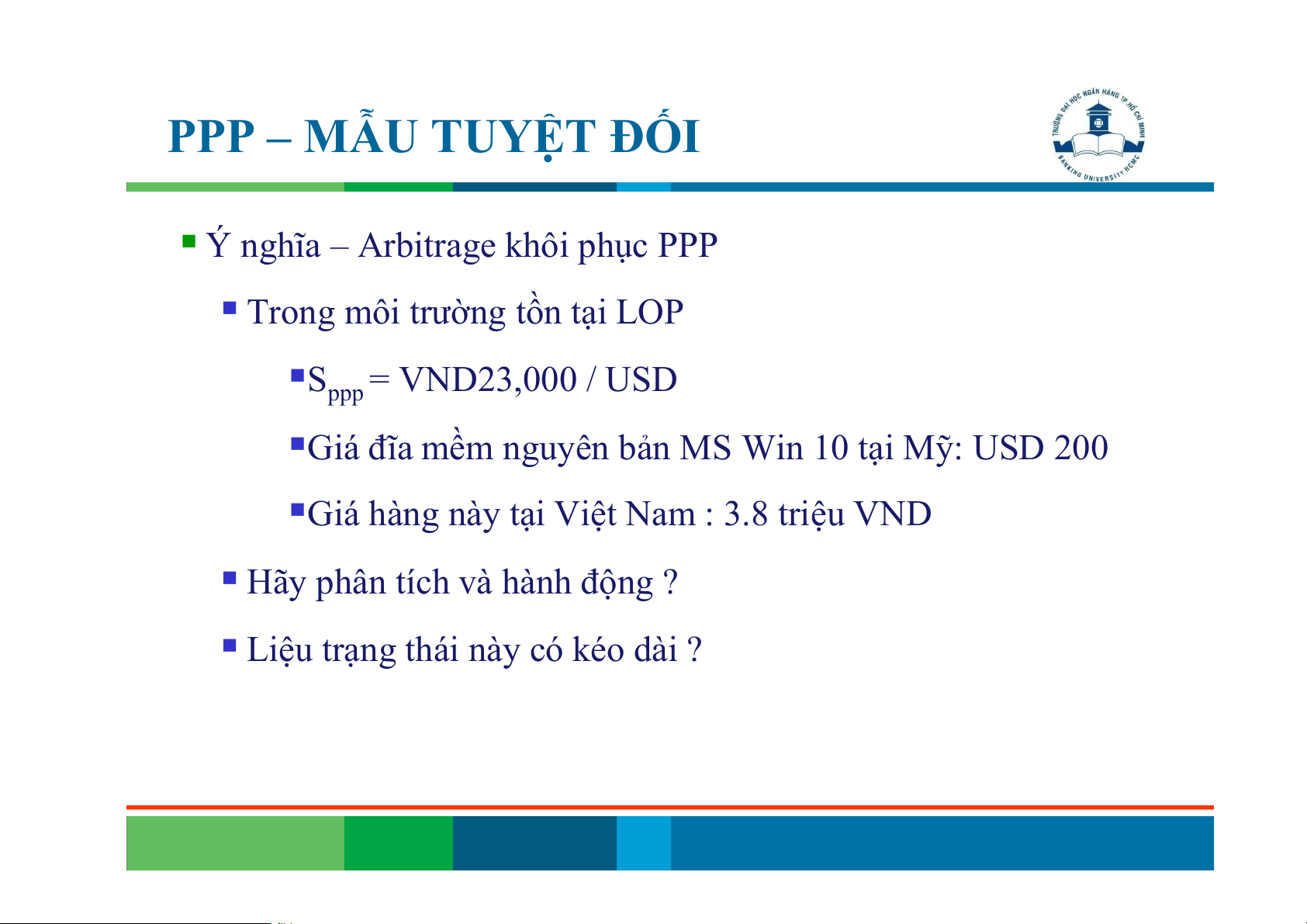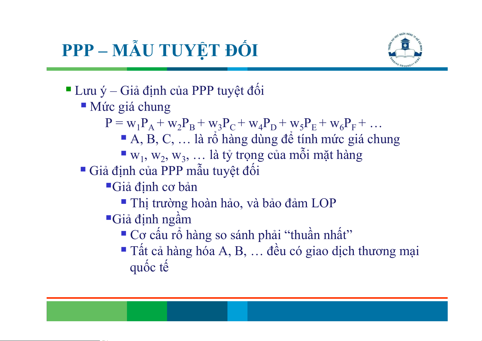 Lưu ý – Giả định của PPP tuyệt đối Mức giá chung P = w + w + w + w + w + w + … 1PA 2PB 3PC 4PD 5PE 6PF