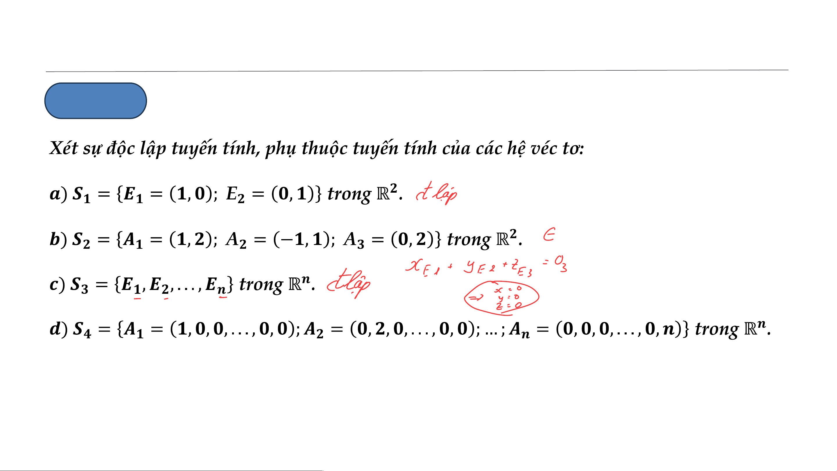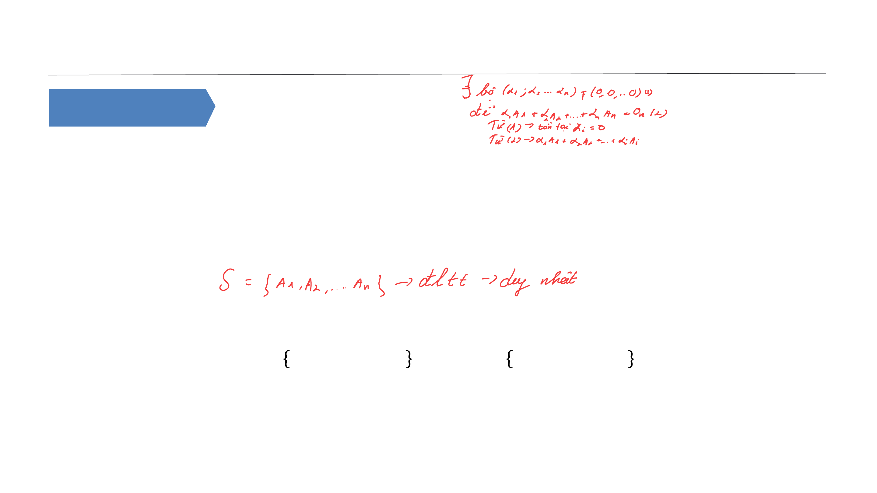 • Hệ 𝑺 được gọi là độc lập tuyến tính (ĐLTT) nếu