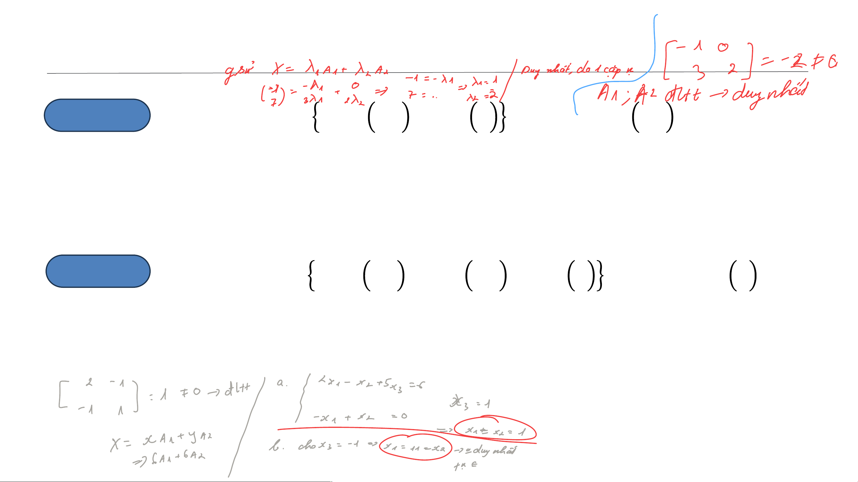 b) Sự biểu diễn tuyến tính ở câu a) có duy nhất không? 𝟐 −𝟏 𝟓 𝟔 Ví