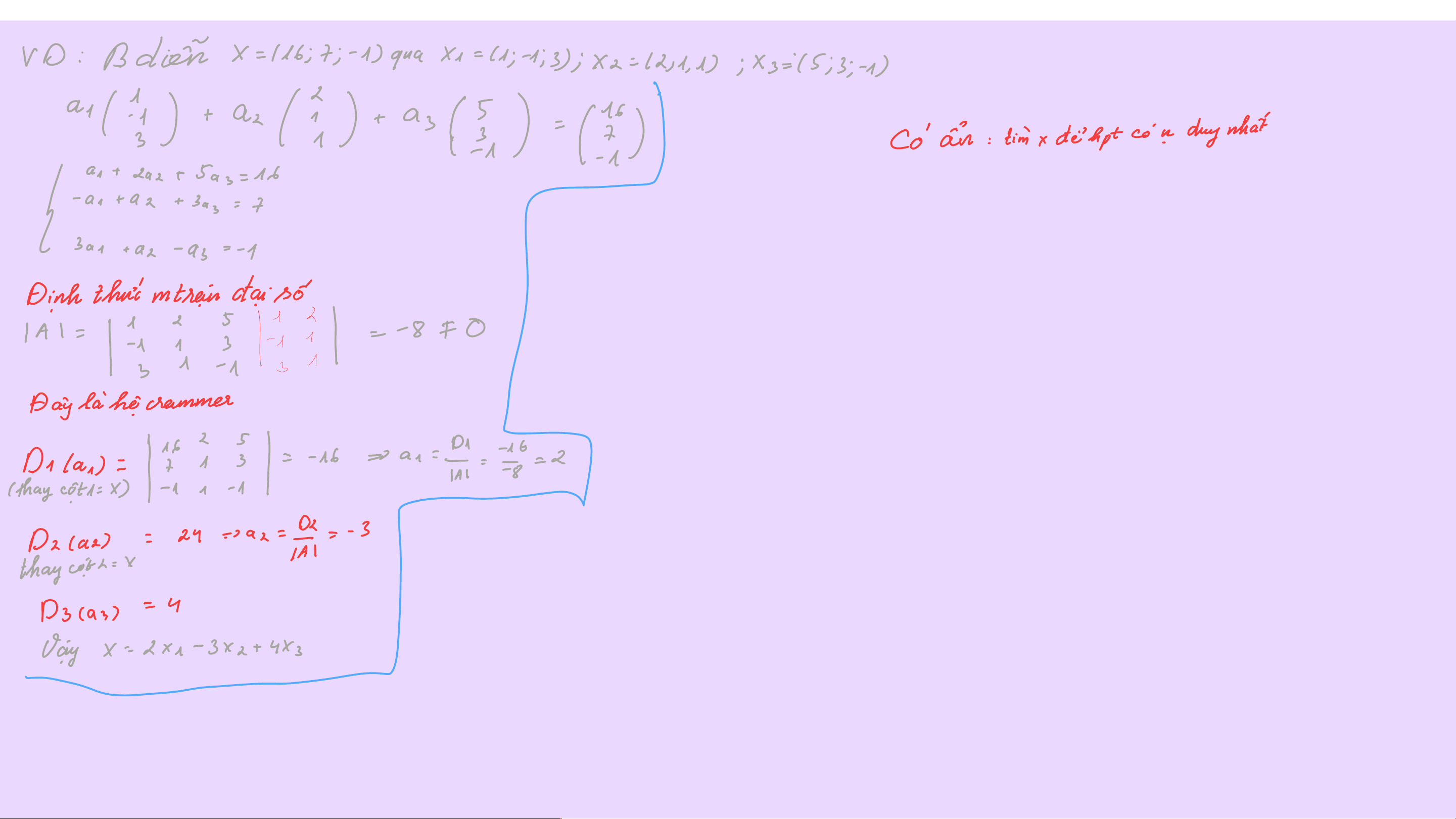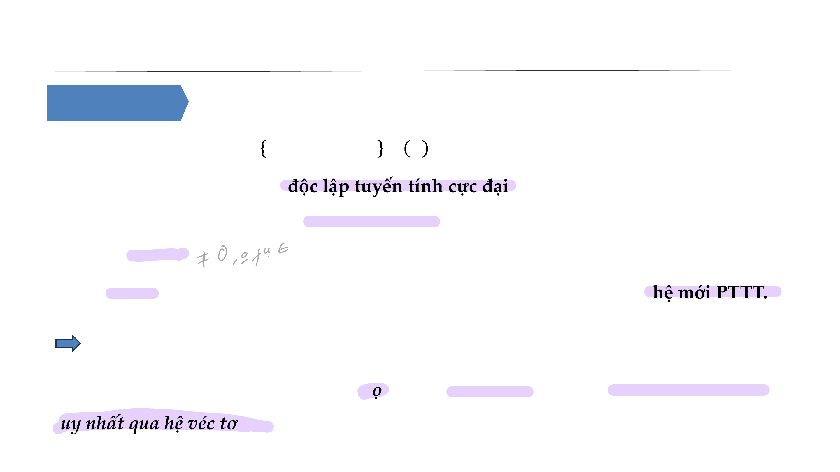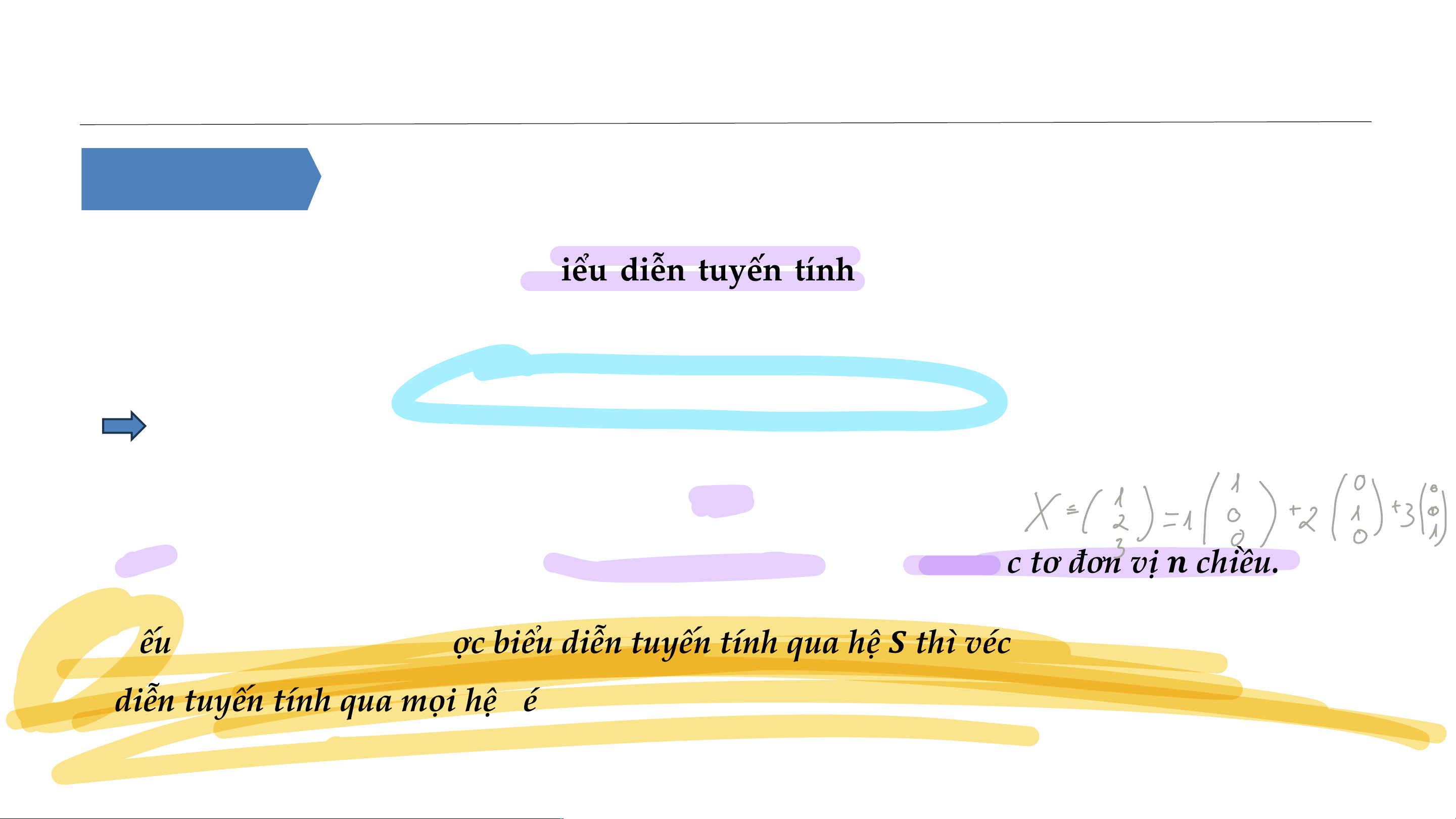 • Nếu véc tơ 𝒏 chiều 𝑿 được biểu diễn tuyến tính qua hệ 𝑺 thì véc tơ 𝑿 luôn được biểu