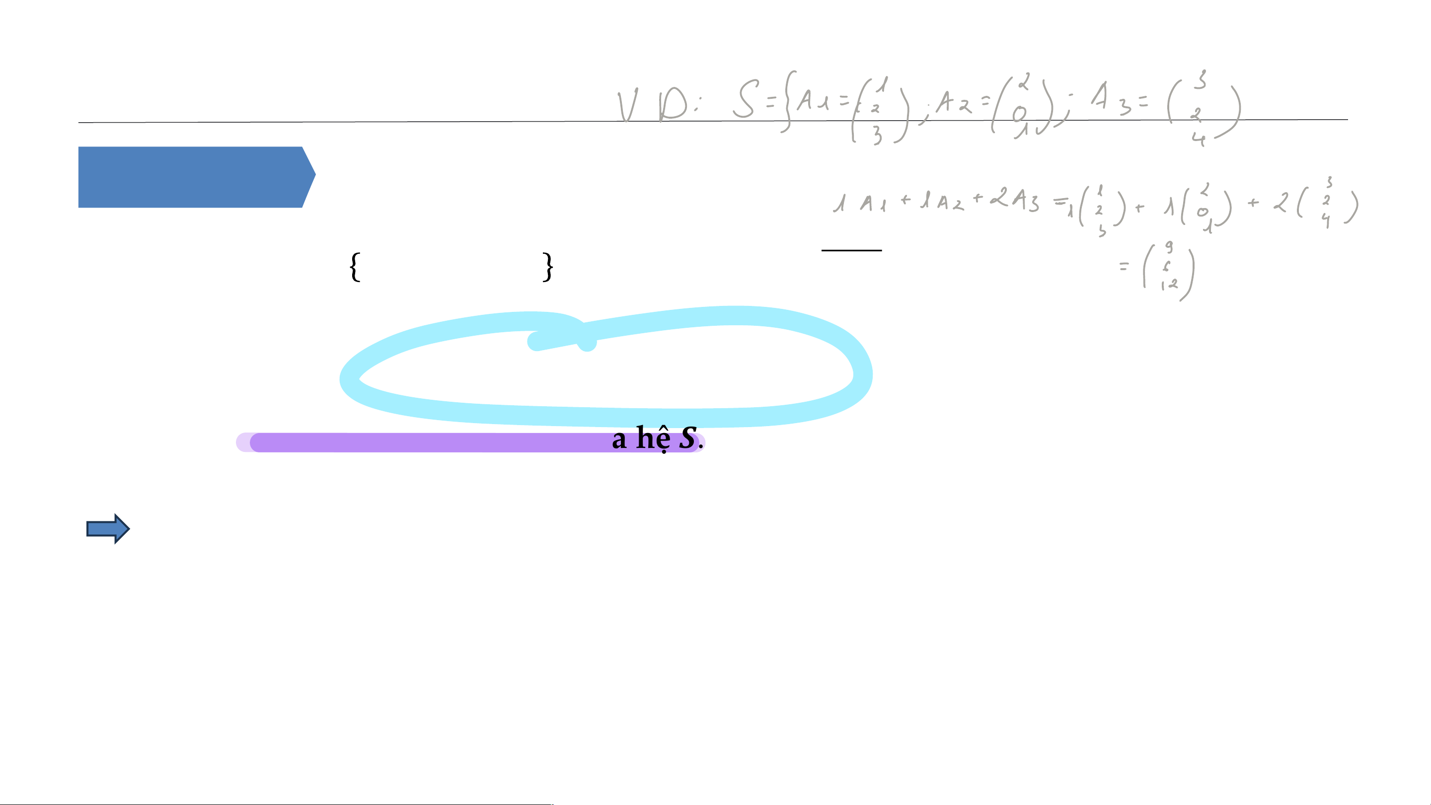 được gọi là một tổ hợp tuyến tính của hệ 𝑺. Nhận xét: