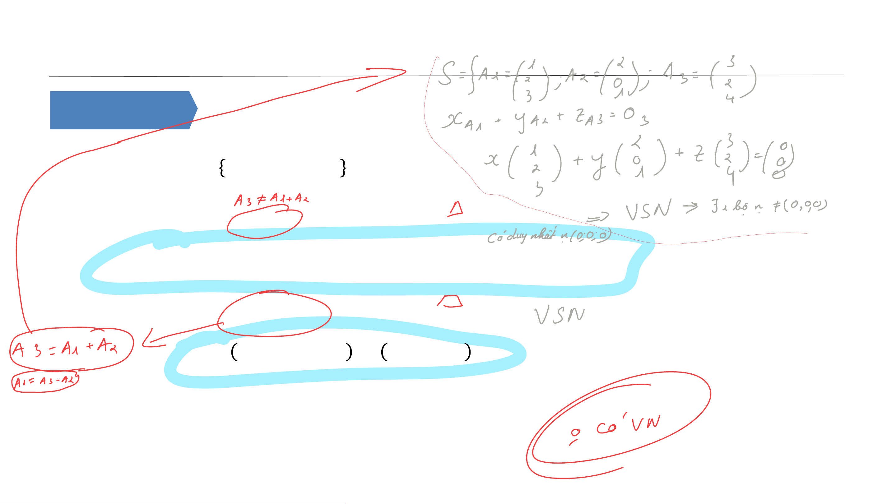 • Hệ 𝑺 được gọi là phụ thuộc tuyến tính (PTTT) nếu