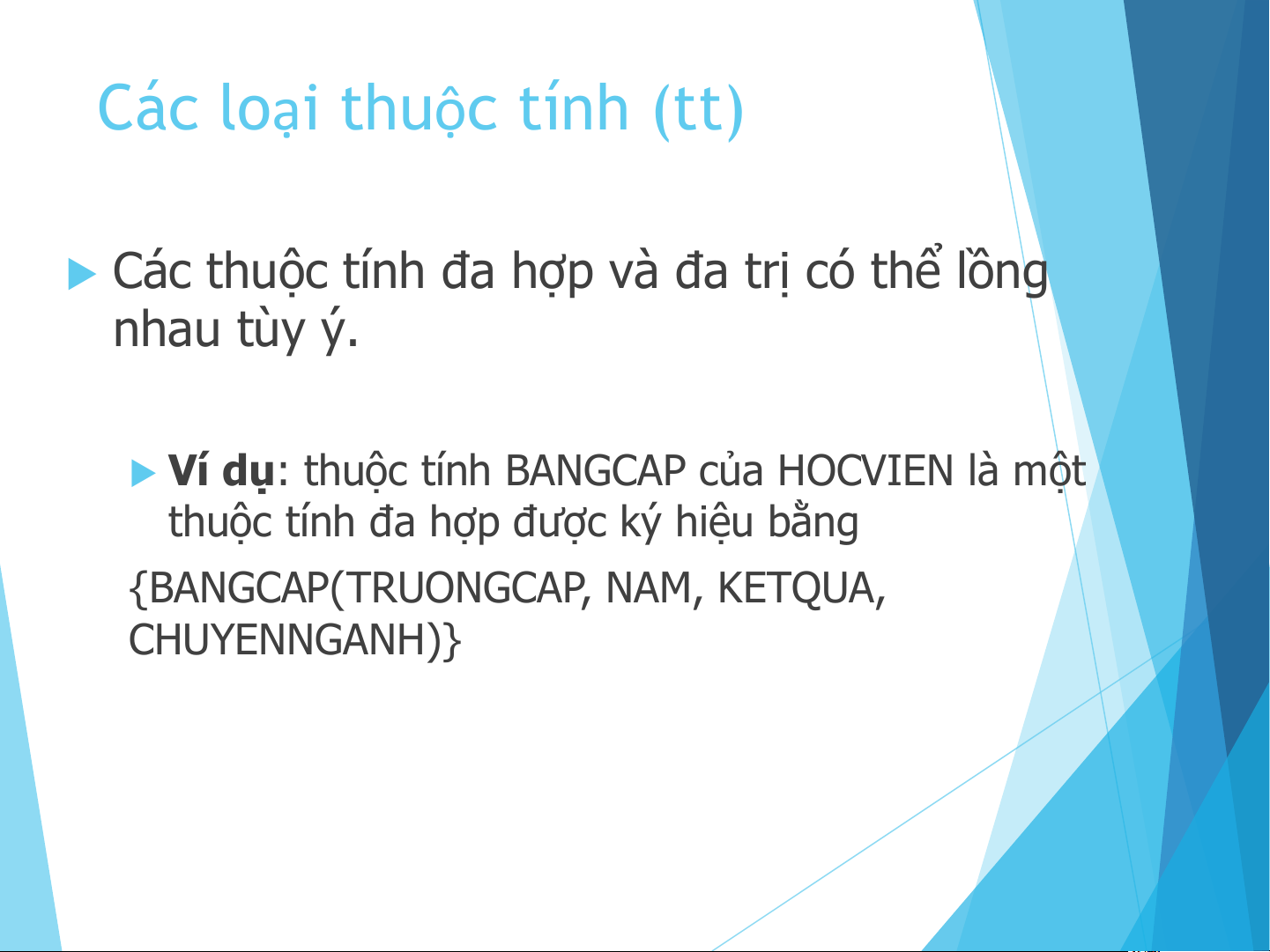 u Ví dụ: thuộc tính BANGCAP của HOCVIEN là một