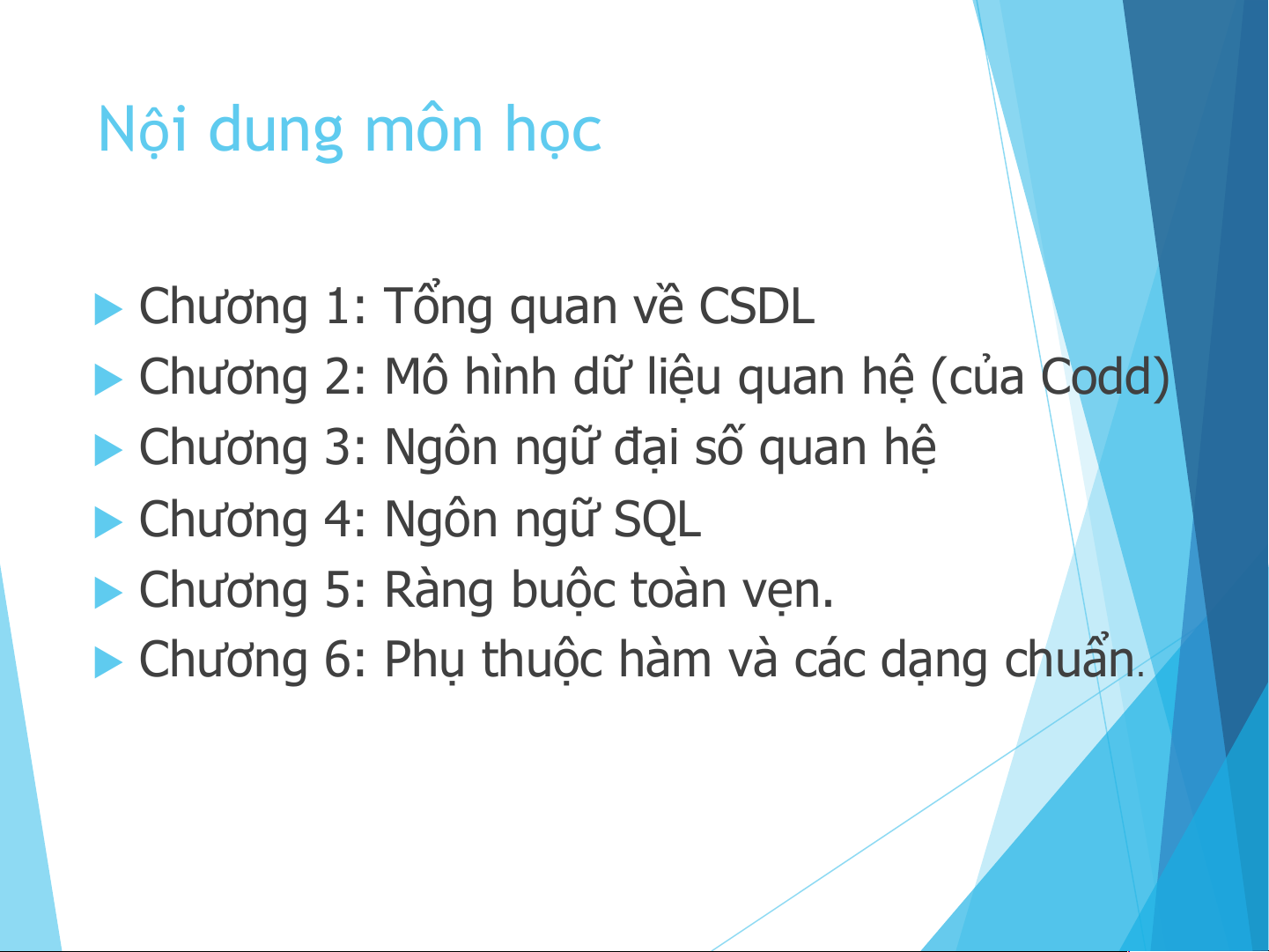 u Chương 3: Ngôn ngữ đại số quan hệ u Chương 4: Ngôn ngữ SQL