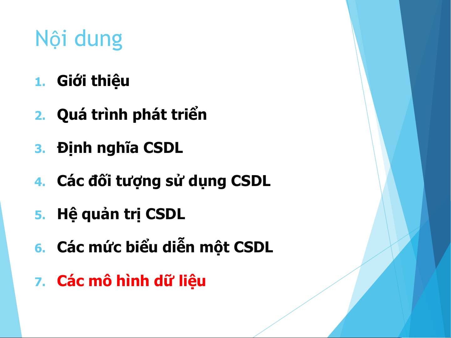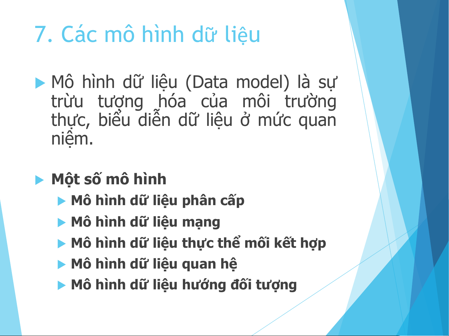 7. Các mô hình dữ liệu 7. Các mô hình dữ liệu