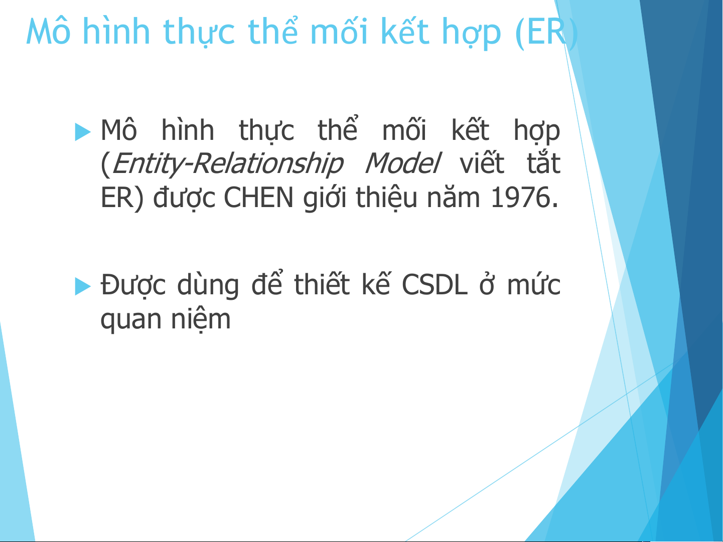 u Được dùng để thiết kế CSDL ở mức quan niệm