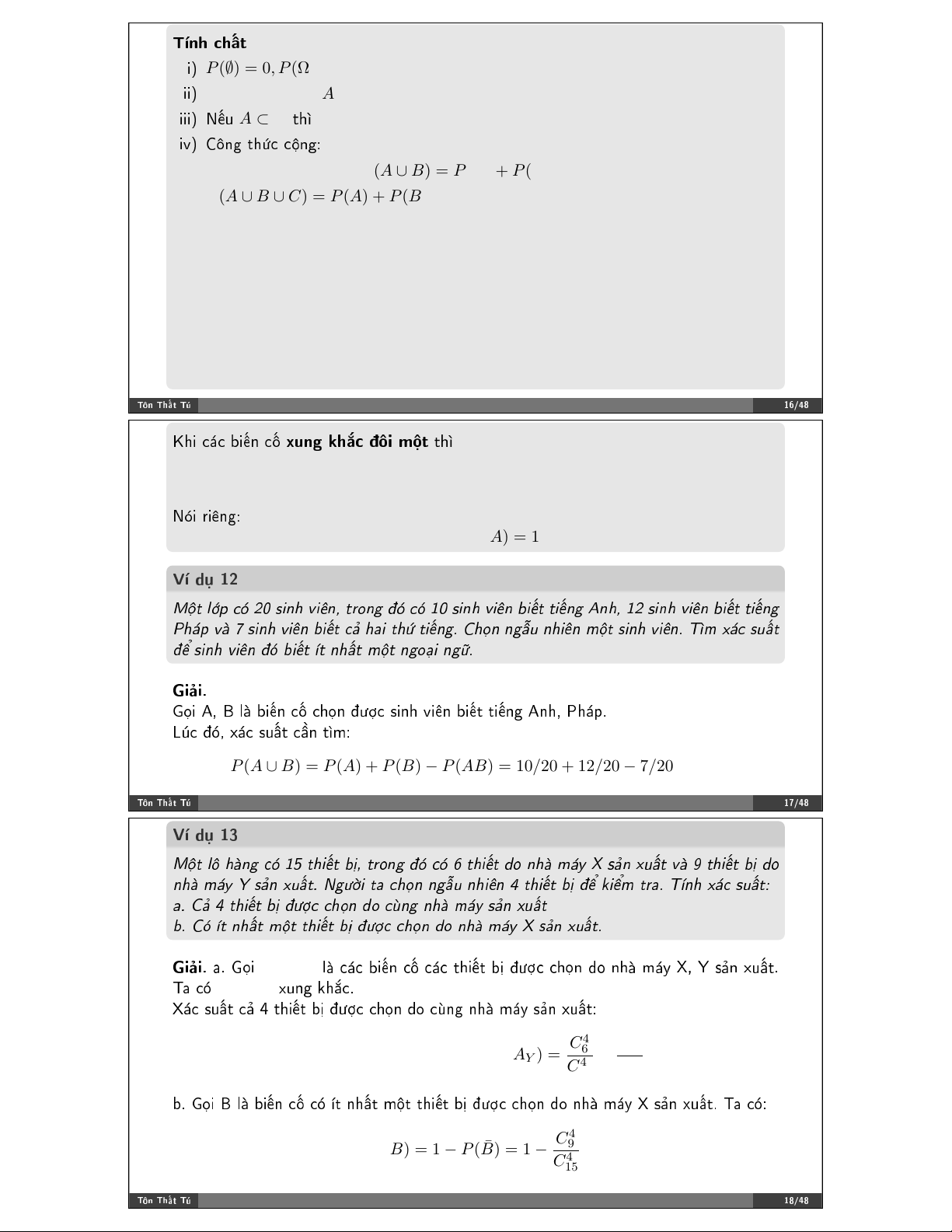 ✲ ❈! ♥❤✐➲✉ ♥❤➜% ♠V% ✈✐➯♥ ✤↕♥ %JK♥❣ ✤➼❝❤✿ ¯ A ¯ B ∪ A ¯ B ∪ ¯ AB ❤♦➦❝ AB