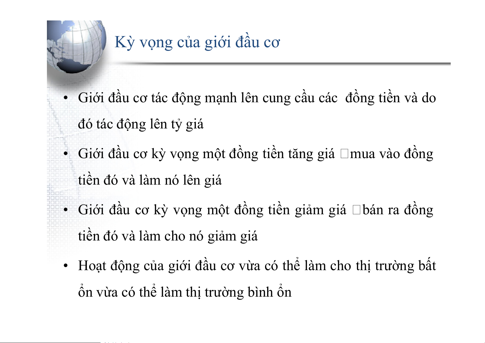 • Giới đầu cơ tác động mạnh lên cung cầu các đồng tiền và do