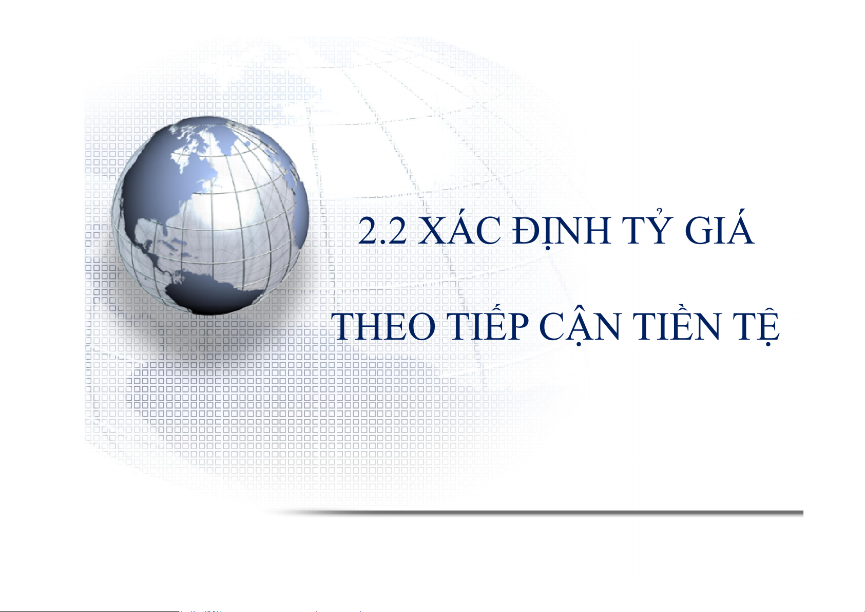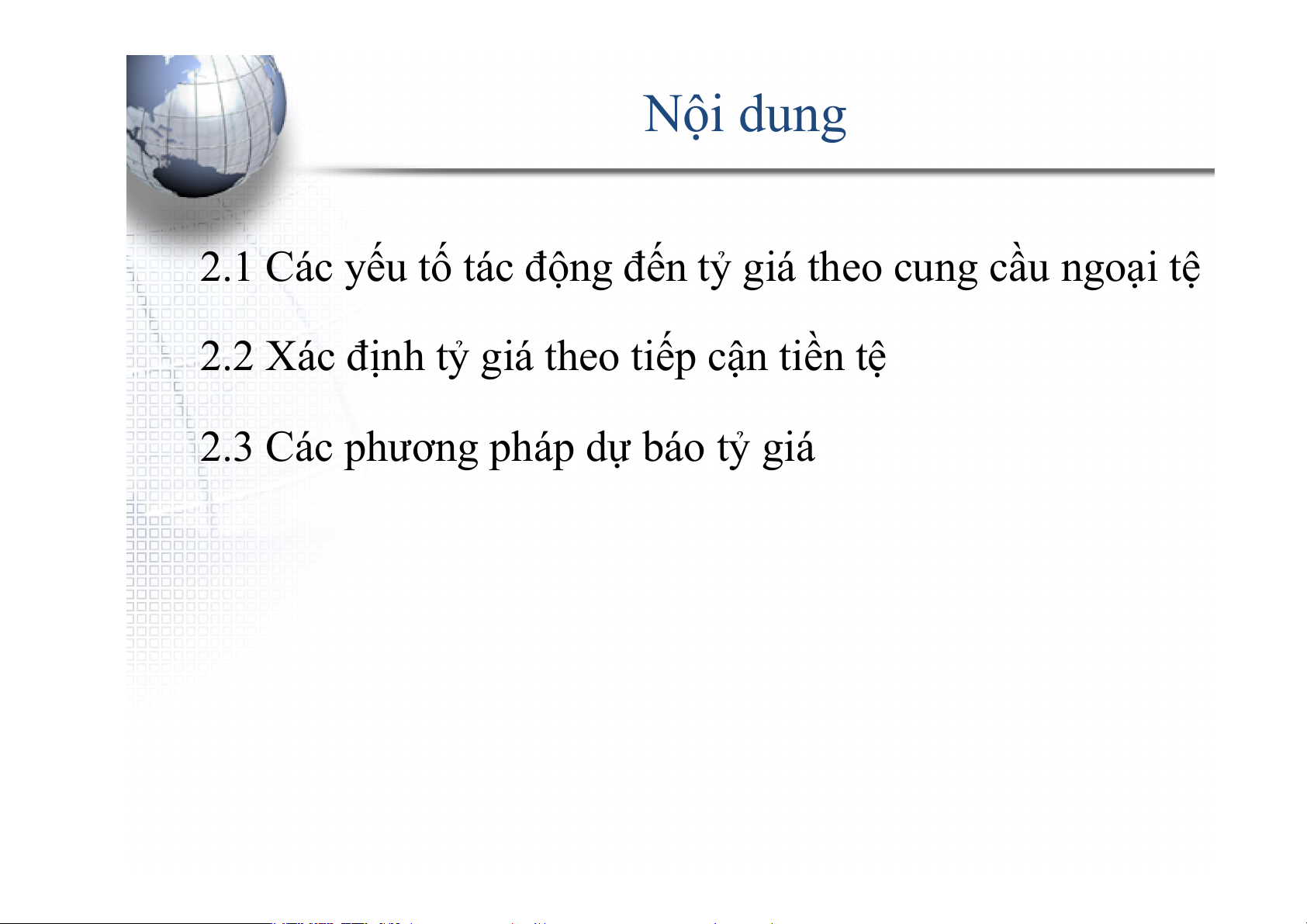 2.2 Xác định tỷ giá theo tiếp cận tiền tệ 2.3 Các phươ p ng pháp p dự báo tỷ giá