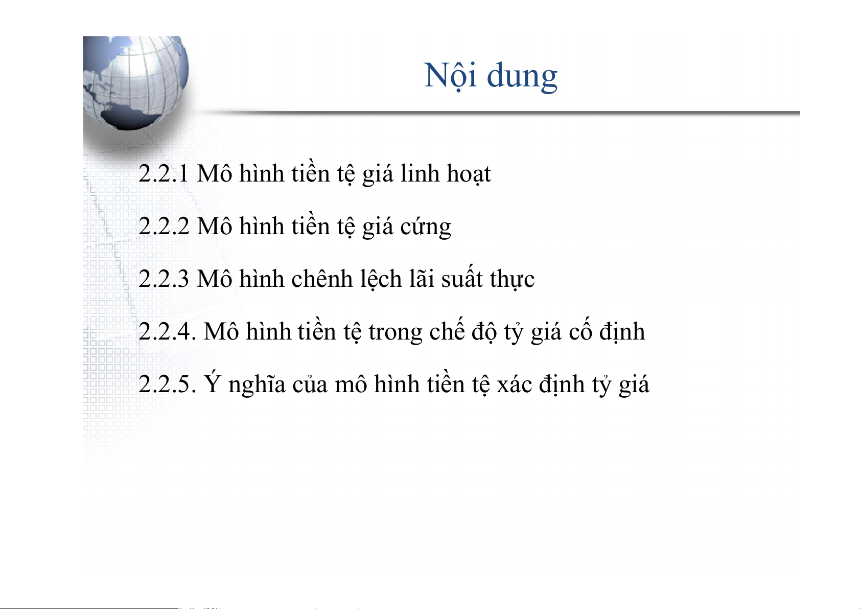 2.2.4. Mô hình tiền tệ trong chế độ tỷ giá cố định