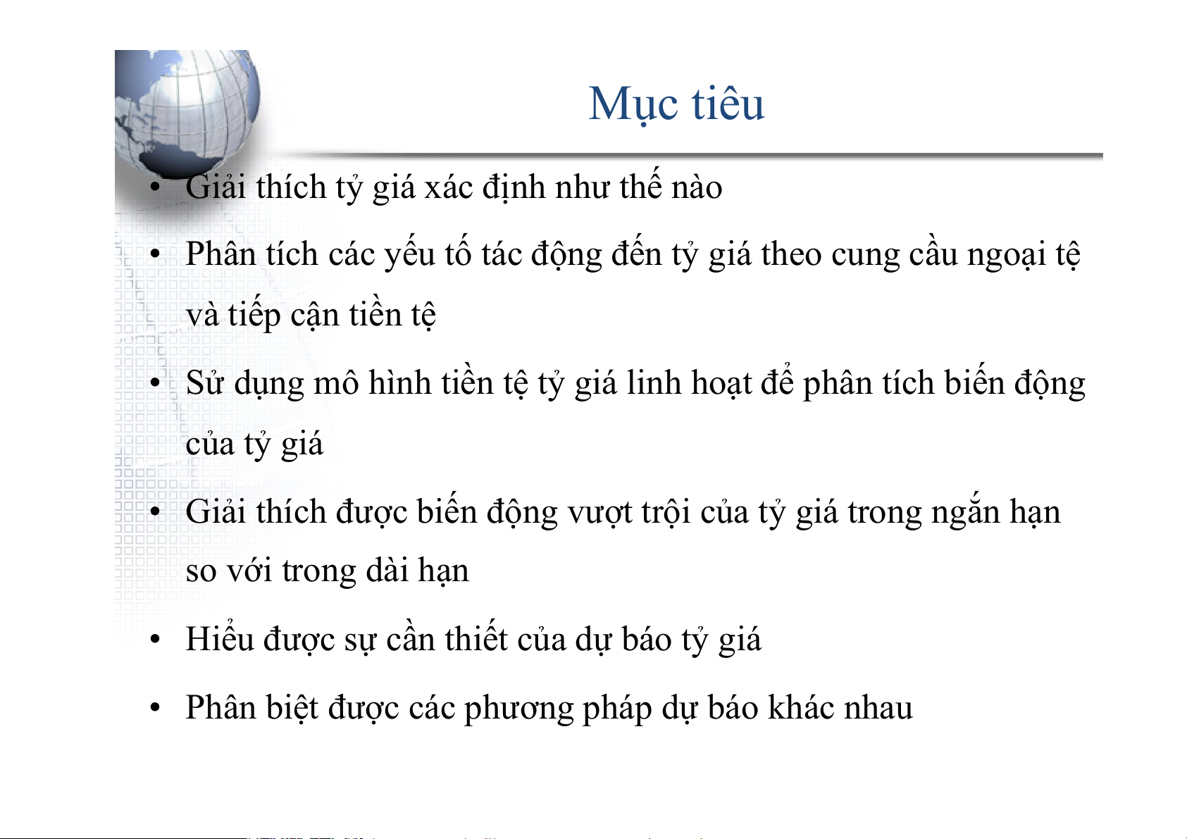 • Hiểu được sự cần thiết của dự báo tỷ giá