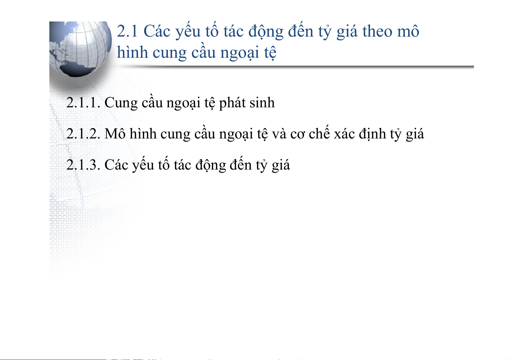 2.1 Các yếu tố tác động đến tỷ giá theo mô hình cung cầu ngoại tệ
