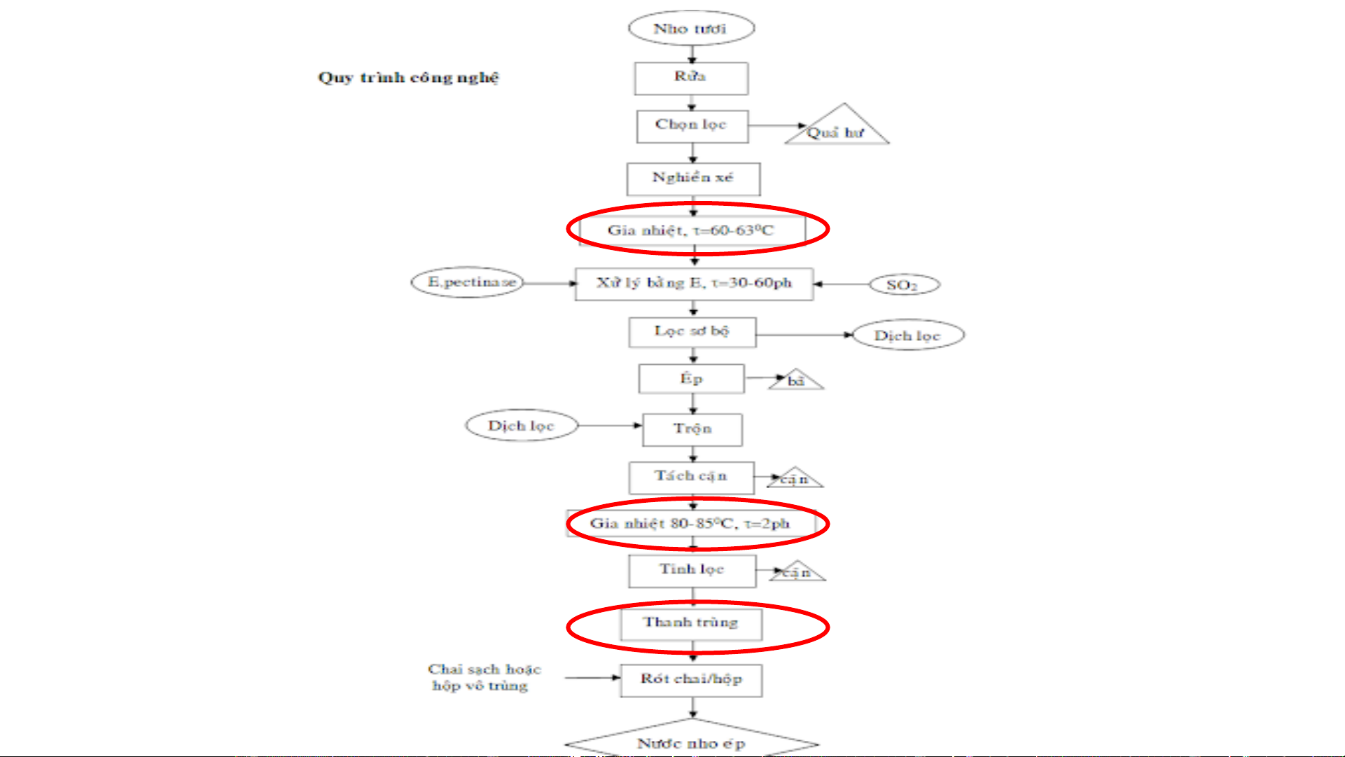 nhiệt độ yêu cầu chế biến của giai đoạn sau, tạo