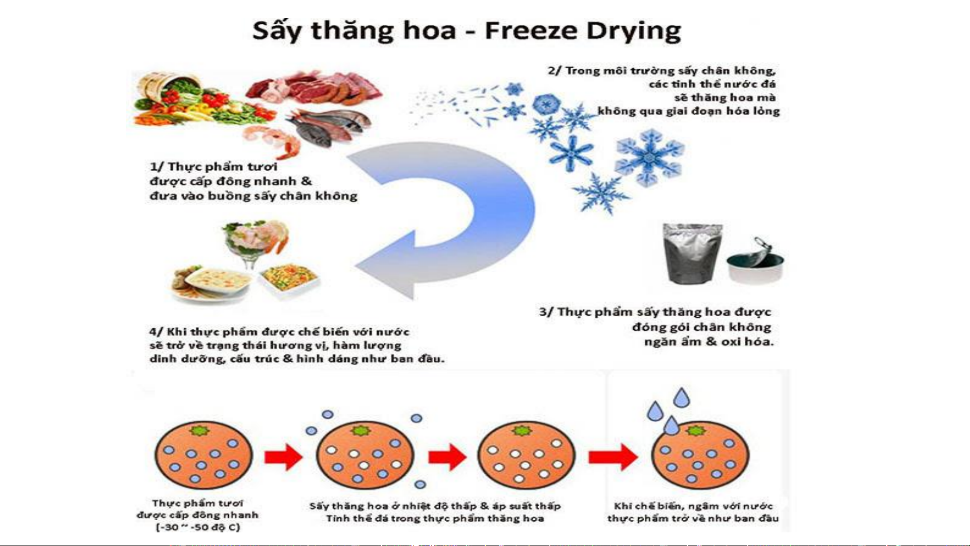 Sấy thăng hoa: Phương pháp sấy trong điều kiện môi trường có độ chân không cao, nhiệt độ rất
