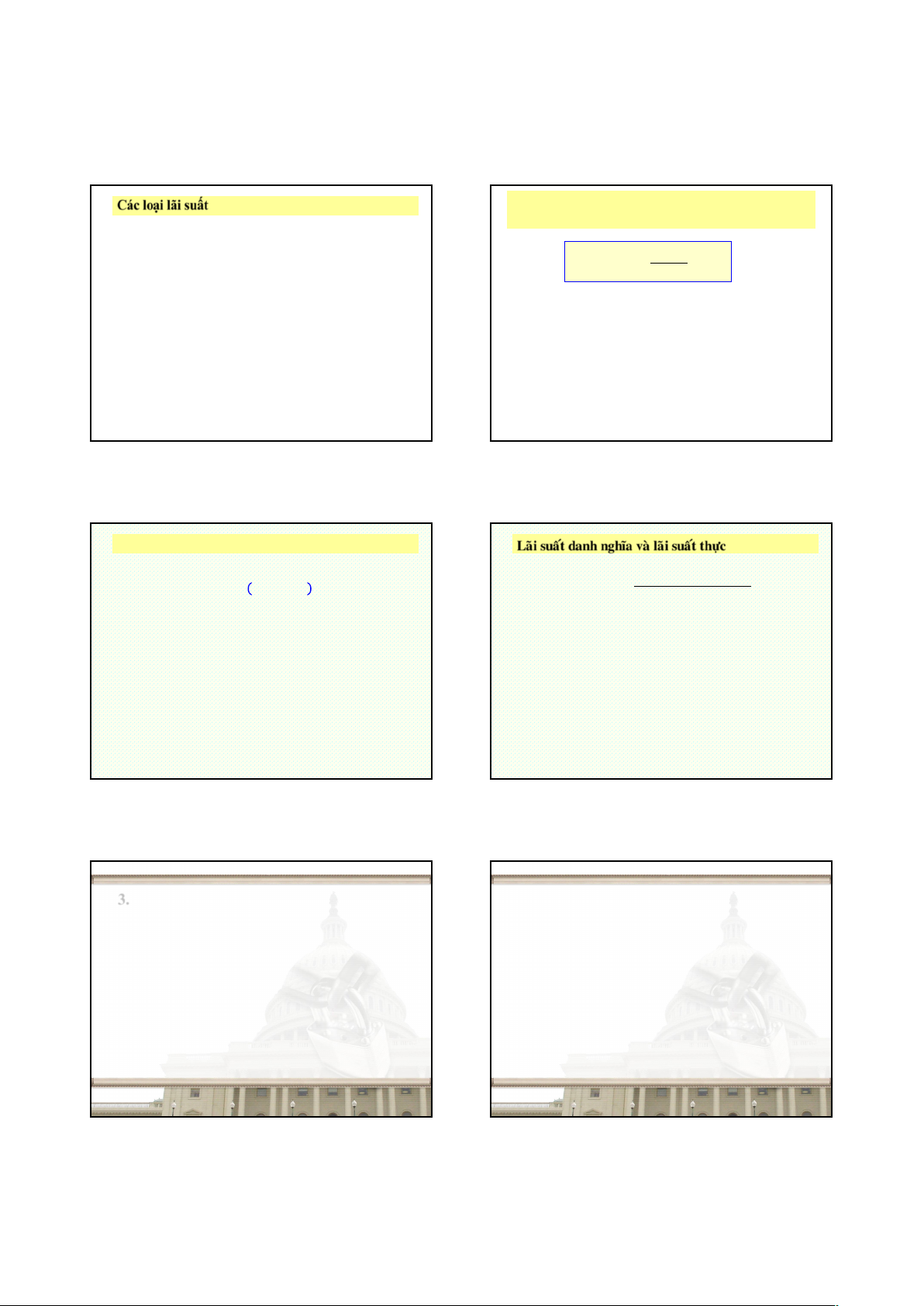 Laõi suaát danh nghóa vaø laõi suaát thöïc 1+ nghóa danh suaát laõi EAR ( 1+ thöïc suaát laõi = 𝟏 = 𝟏 + EAR𝟐 − 𝟏 1+ phaùt laïm leä tyû Trong ñoù