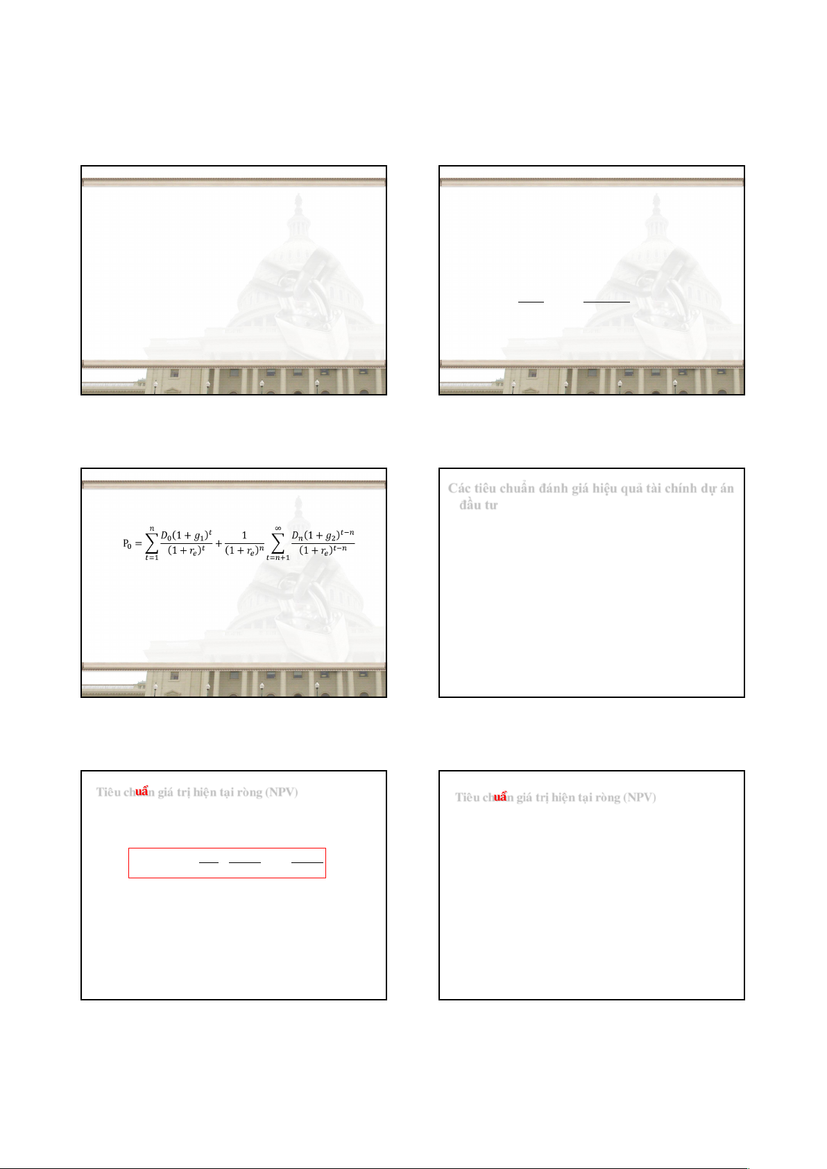 thôøi ñieåm 0) sau khi ñaõ tính ñeán yeáu toá chi phí cô hoäi cuûa voán 1 2 n NPV = CF - + + + ....+ ñaàu tö. 0 2 n 1+ r 1 ( + r) 1 ( + r)
