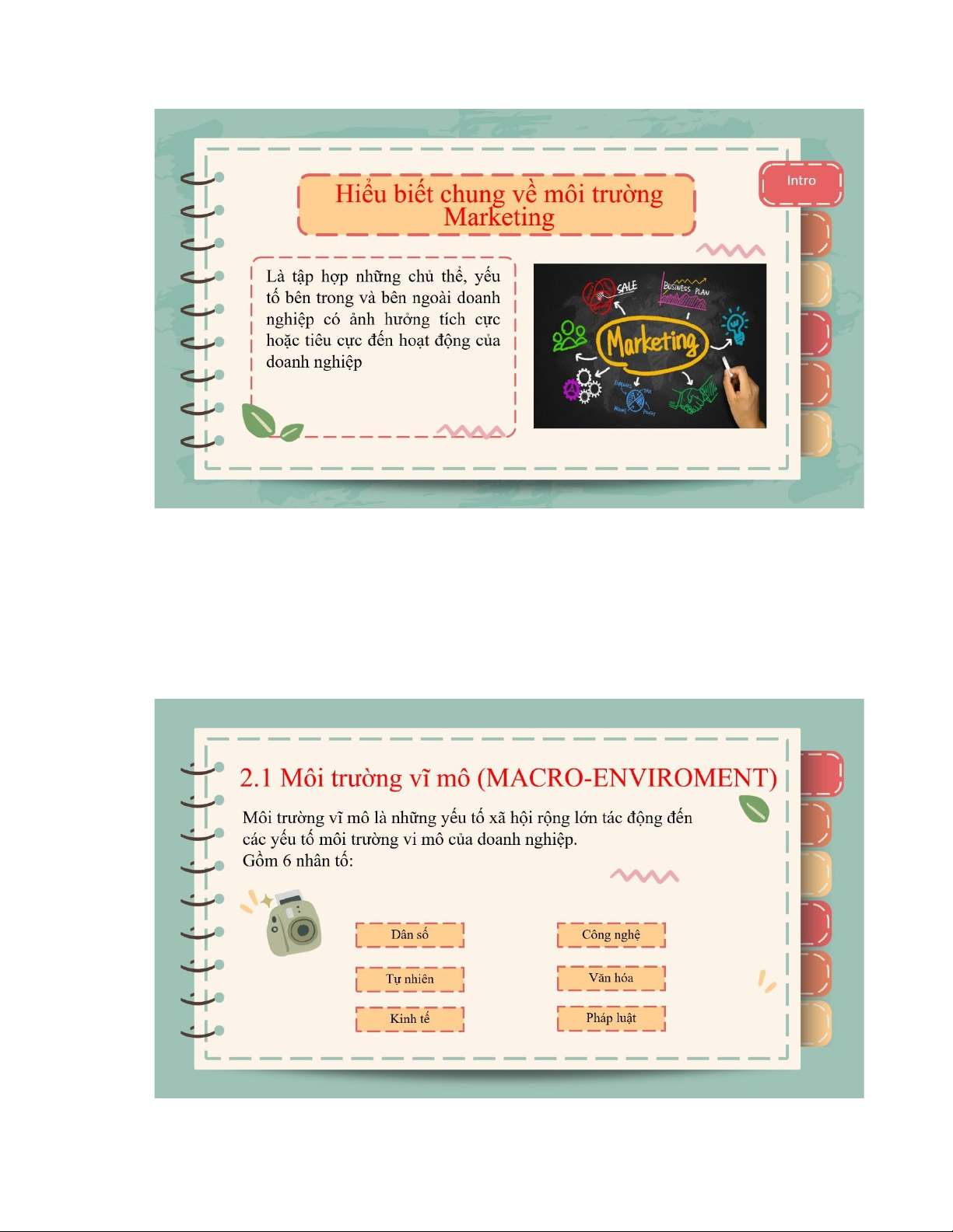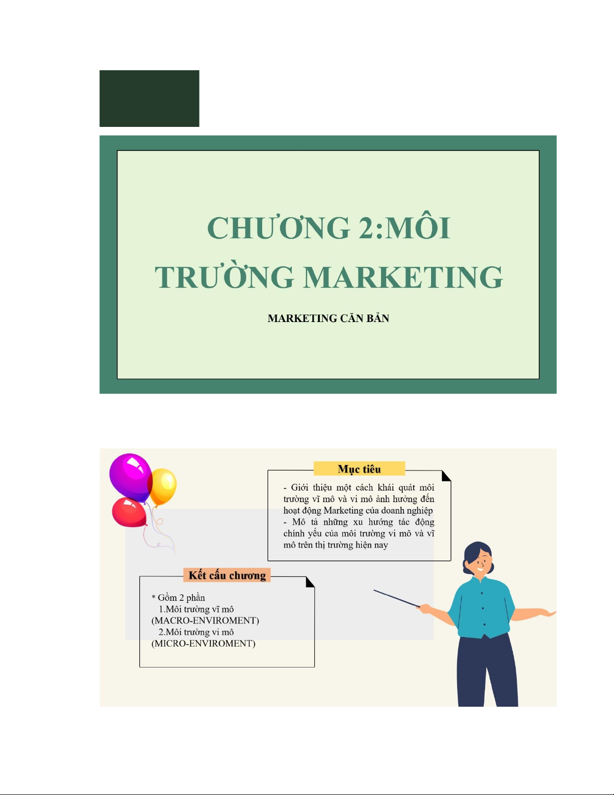 Giới thiệu một cách khái quát môi trường vĩ mô và vi mô ảnh hưởng đến hoạt động marketing của doanh nghiệp. Mô tả những xu hướng tác động chính yếu của môi trường vĩ mô và vi mô trên thị trường hiện nay. Hiểu biết chung về môi trường vi mô. Tài liệu giúp bạn tham khảo, ôn tập và đạt kết quả cao. Mời đọc đón xem!