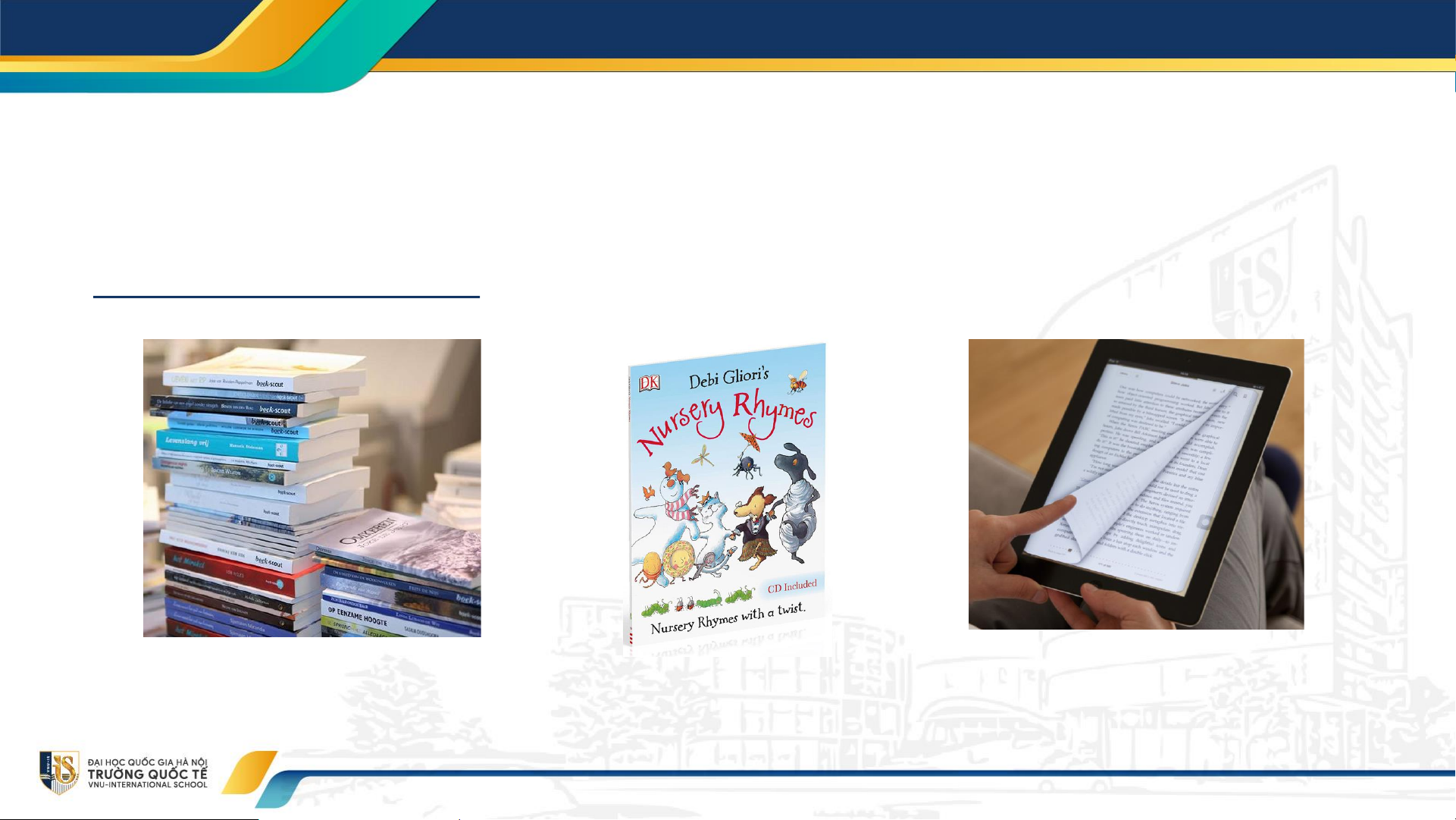 Theo hình thức thông tin: Sách In Sách Âm thanh Sách Điện tử