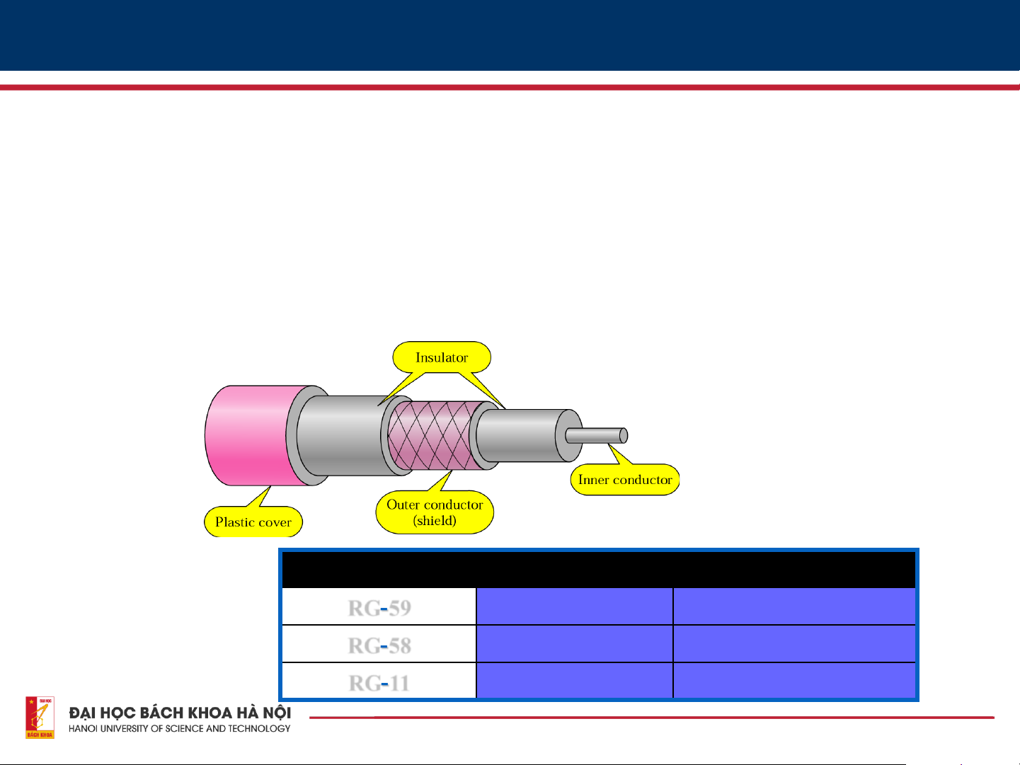 • Ngoài cùng có vỏ bọc cách điện Category Impedance Use RG-59 75 Cable TV RG-58 50 Thin Ethernet RG-11 50 Thick Ethernet 8 Ứng dụng • Truyền bá TV