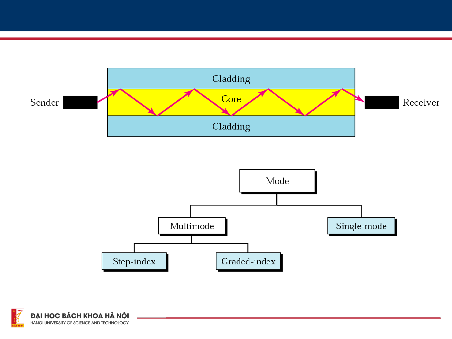 • Cladding: Vật chất quang bên ngoài bao bọc lõi mà