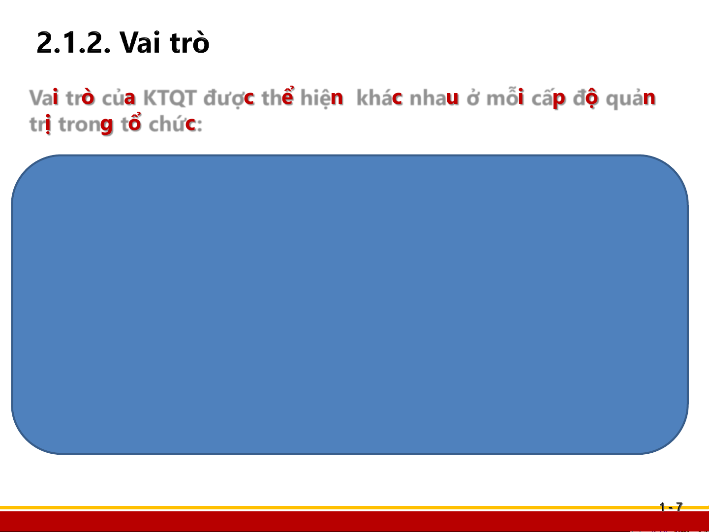 Vai trò của KTQT được thể hiện khác nhau ở mỗi cấp độ quản